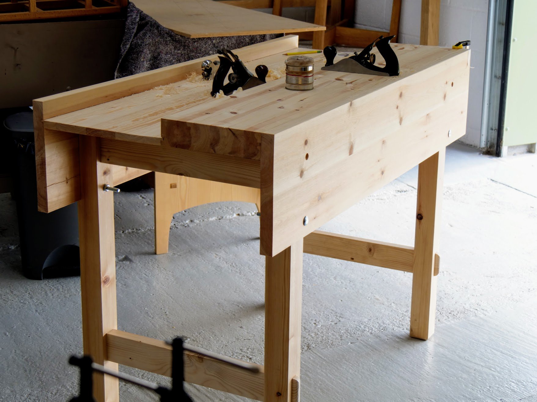 Hannah has been working with me since December for a day or two a week and then working in the classes we have too. She has just finished the construction of her home workbench, which she started two weeks ago. This one follows my latest pattern and dismantles for her to transport it as she plans on doing more practice work at home too, to progress her training and making.