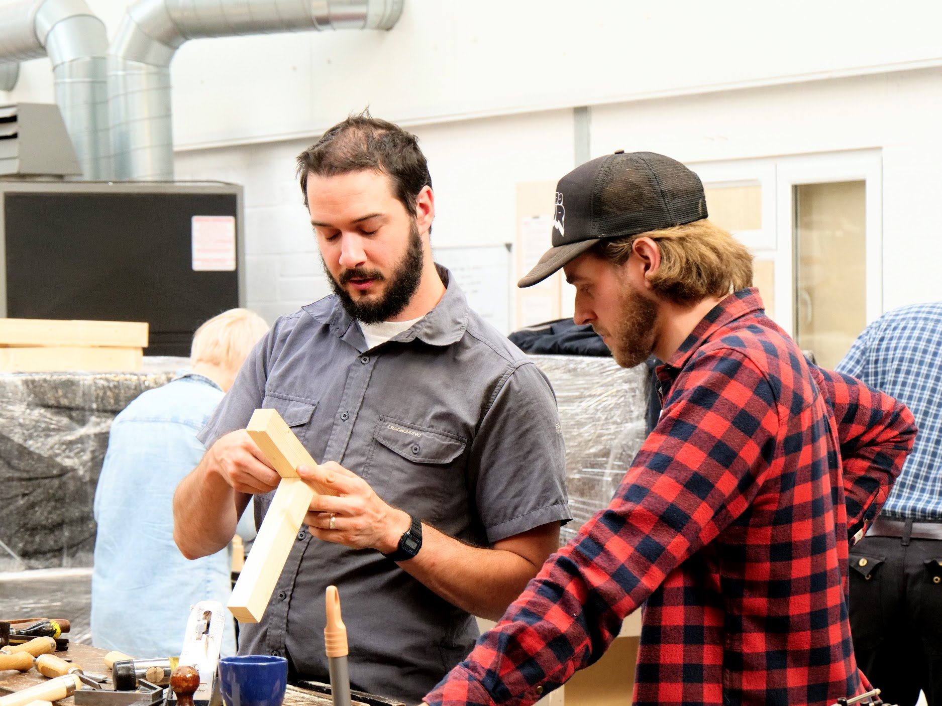 Some made their first woodworking joints and they were successful right from the get go. It's more than making a successful union between wooden bits though, they absorb much more in a live class because of course being there in the zone is pure visceral in the truest sense of the world. I know it and they know it. It's still hard to believe that we post the class dates early in the year and all the classes fill in a matter of days or even just hours sometimes. That's because we keep it so real. I keep saying "It's not what the boy does to the wood but what the wood does to the boy." In my head. Course it's not gender specific, but I am not altering what Sam said on his sign.