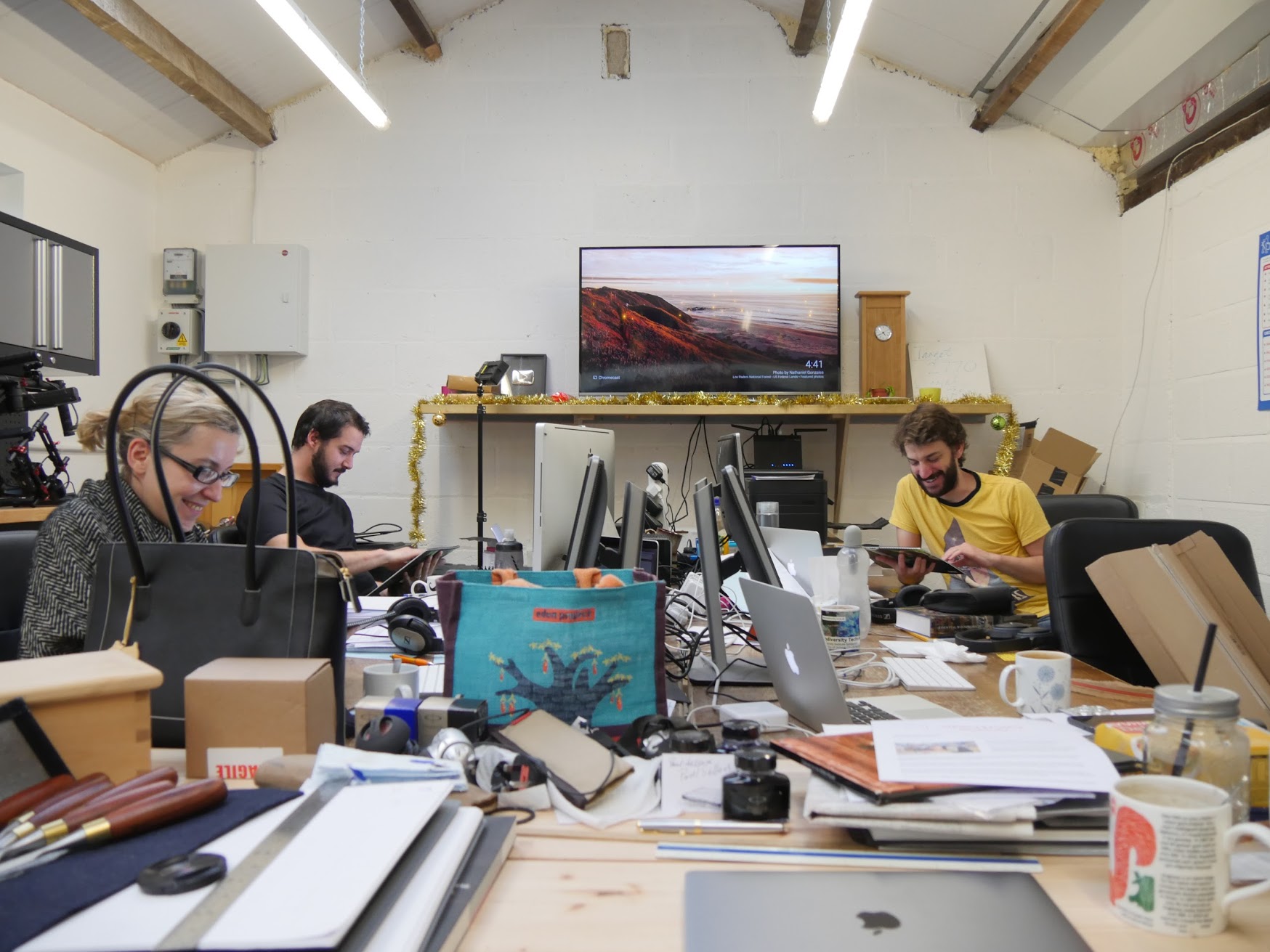 Our conditions are cramped by any office standards and when you think that I work opposite this by only a few feet you begin to see that something had to give. We need space. To increase productivity so that I can achieve my goal in this lifetime we need at least the two more people we are about to take on. I am drawing all the drawings, developing designs, prototyping, writing, presenting and much more and even though I love it, it has become evident that we need more help. We interviewed this past week for a researcher/educator to work alongside me and those making the content; help is indeed on its way. Our guys have never once complained by the way.