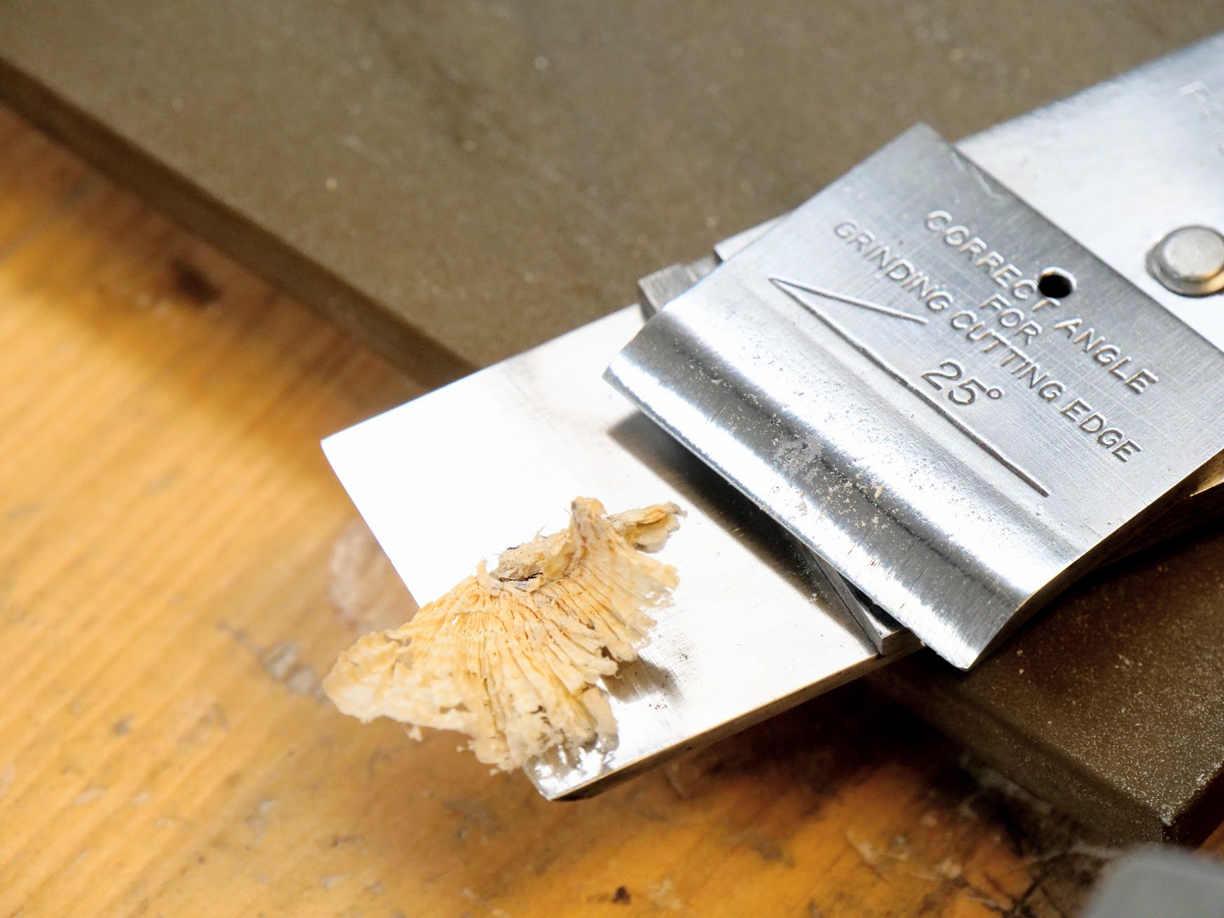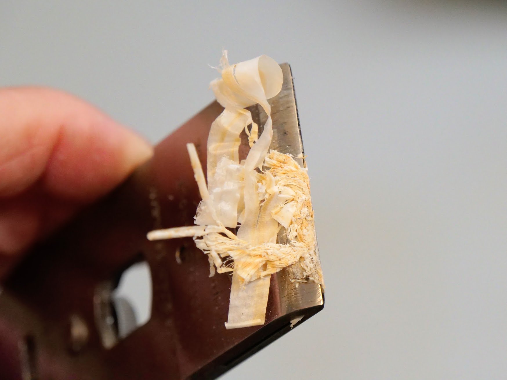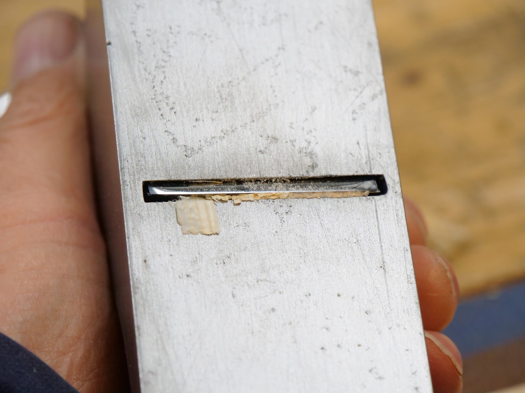 Even the very slightest opening here will result in a jam because the shavings always start from infinity and thicken as the shaving stroke progresses into the wood.