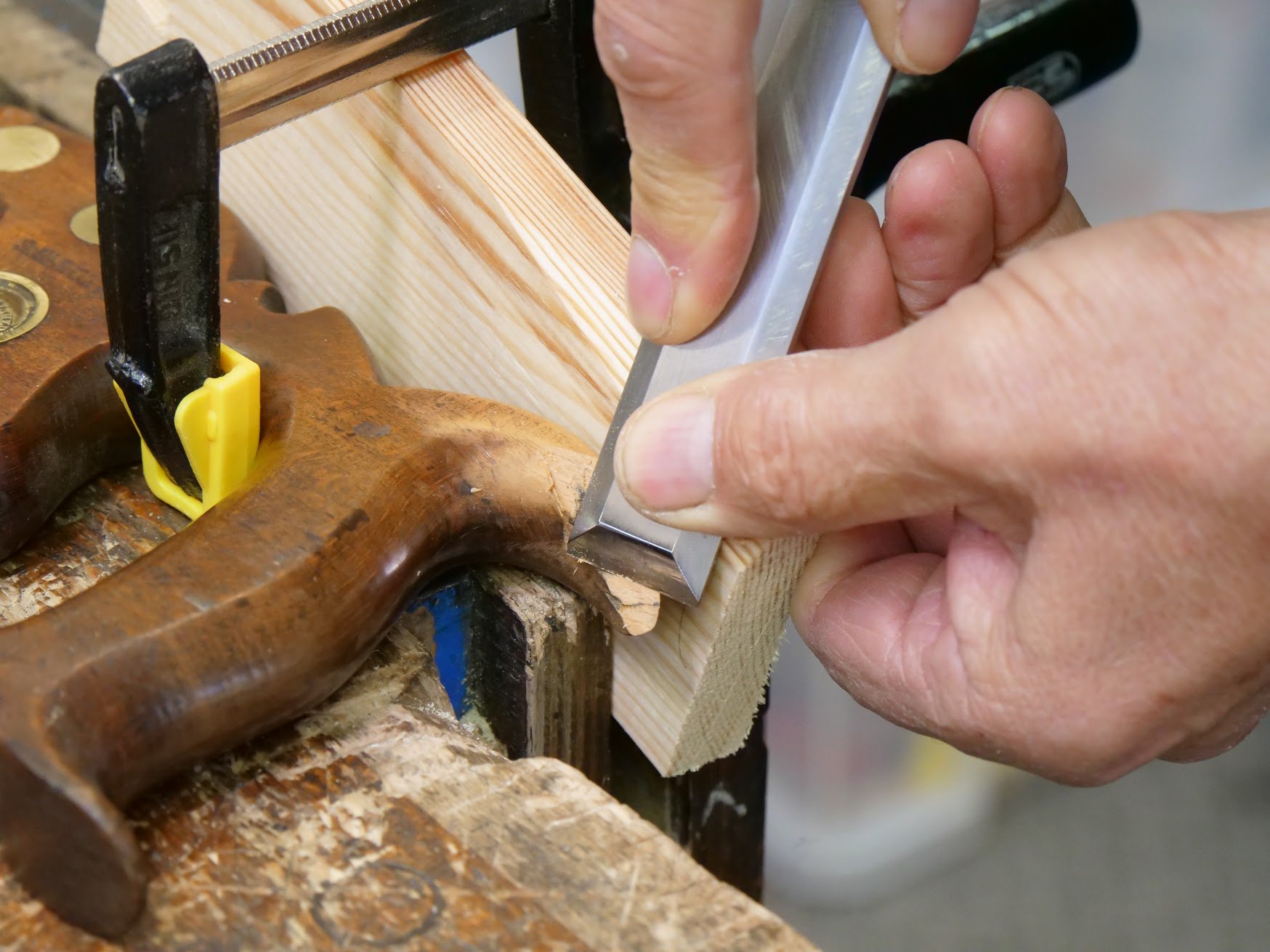 The chisel made the primary cuts to some beech I found to cut the repair piece from.