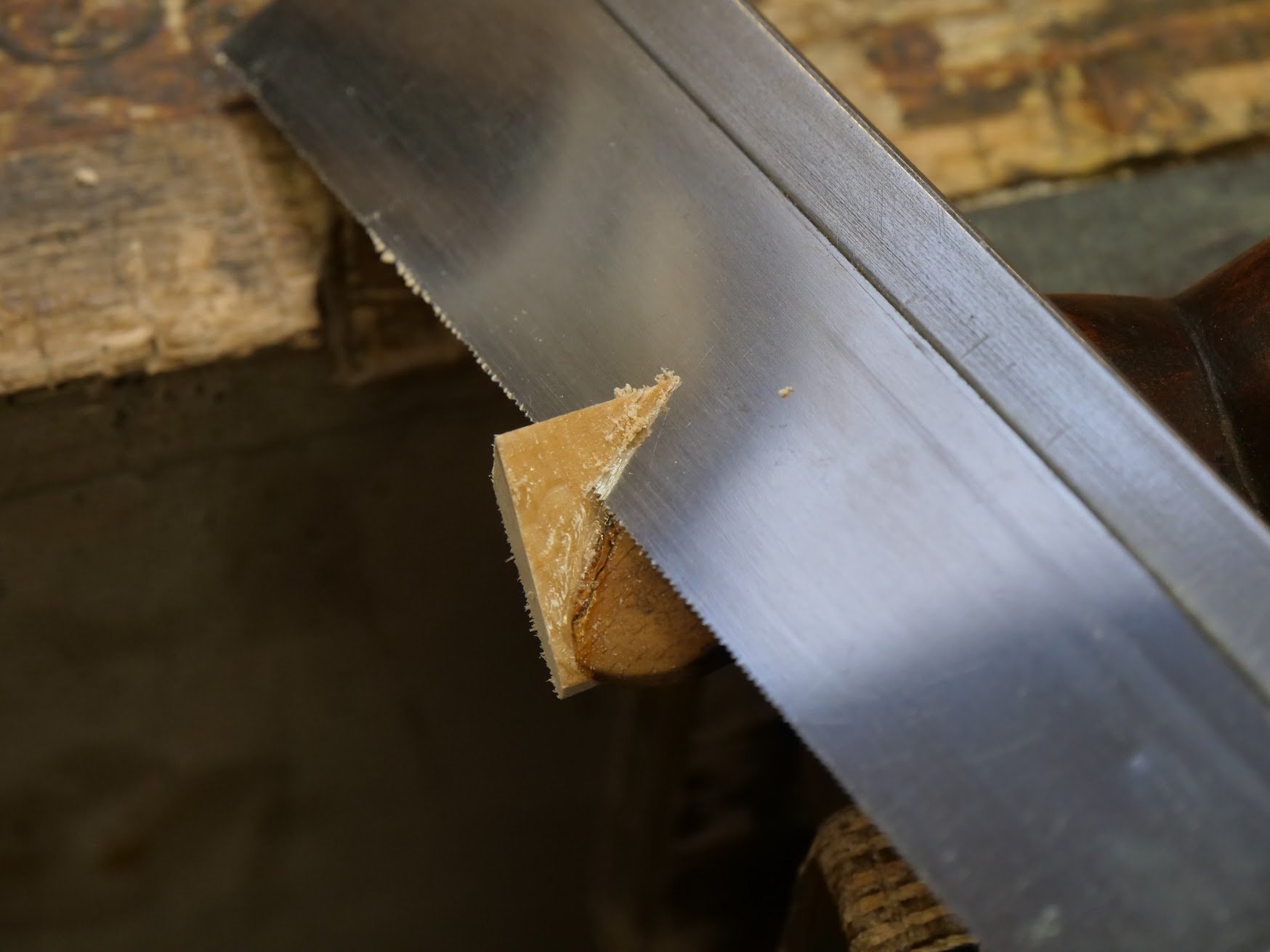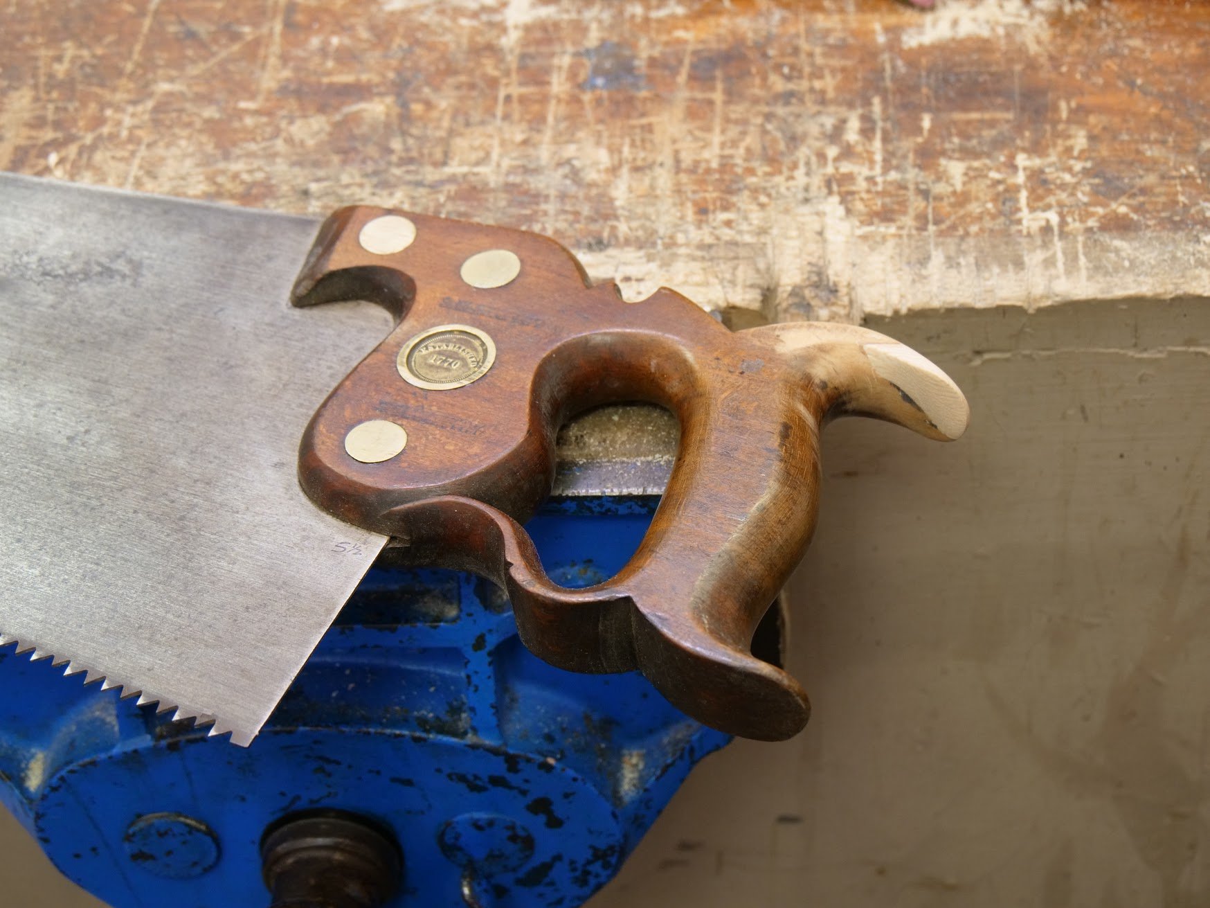 The saw handle on my R Groves rip had been damaged and poorly repaired. It happens and it's not uncommon at all to find a saw horn damaged. The repair popped off at some time and I have put off the repair proper until I found the right time; that's something I rarely do because I like solutions in time not late. I have been packing away my tools, categorising them, archiving some, destining some for repair and keeping primary users close to my right hand. My Groves always take priority.