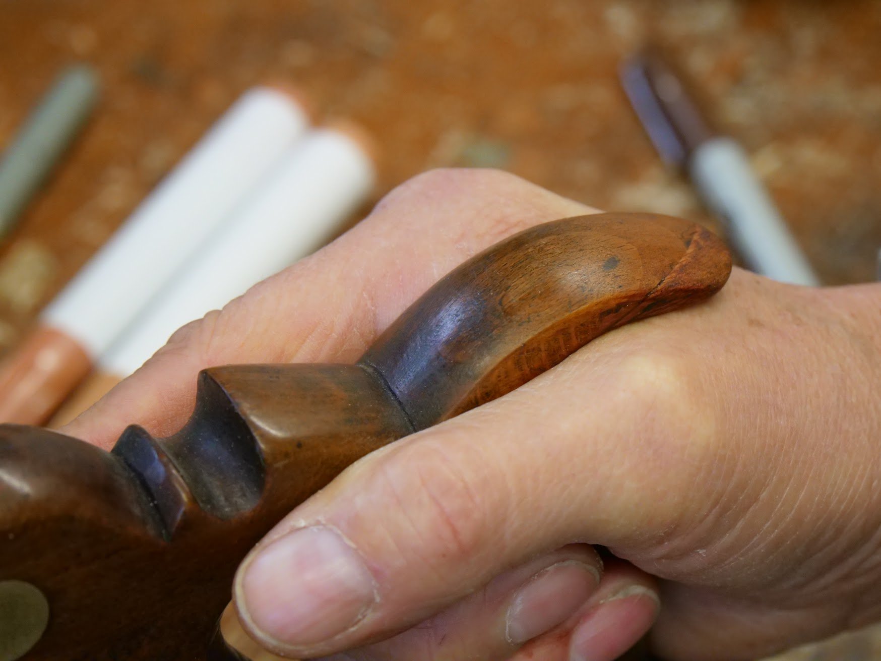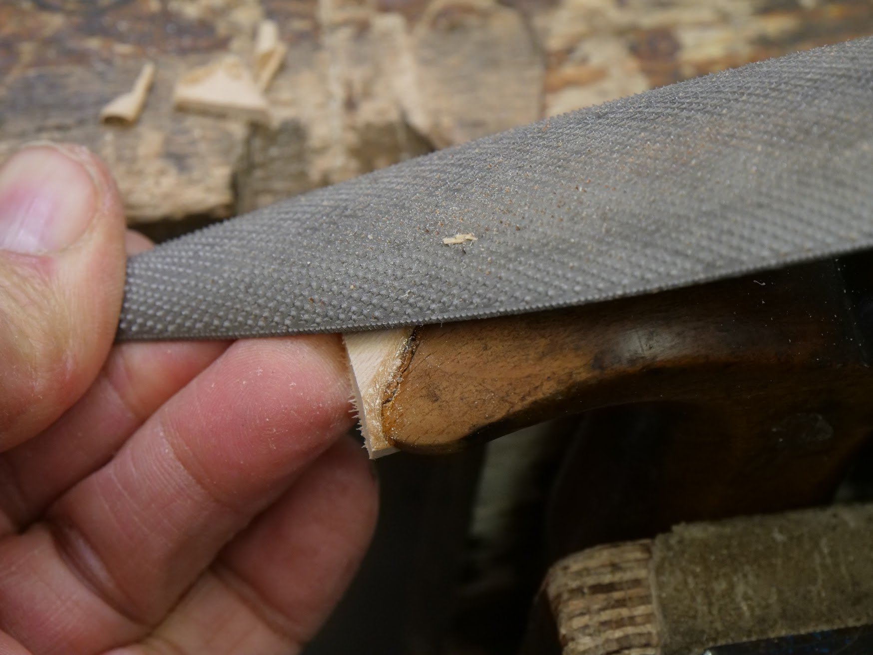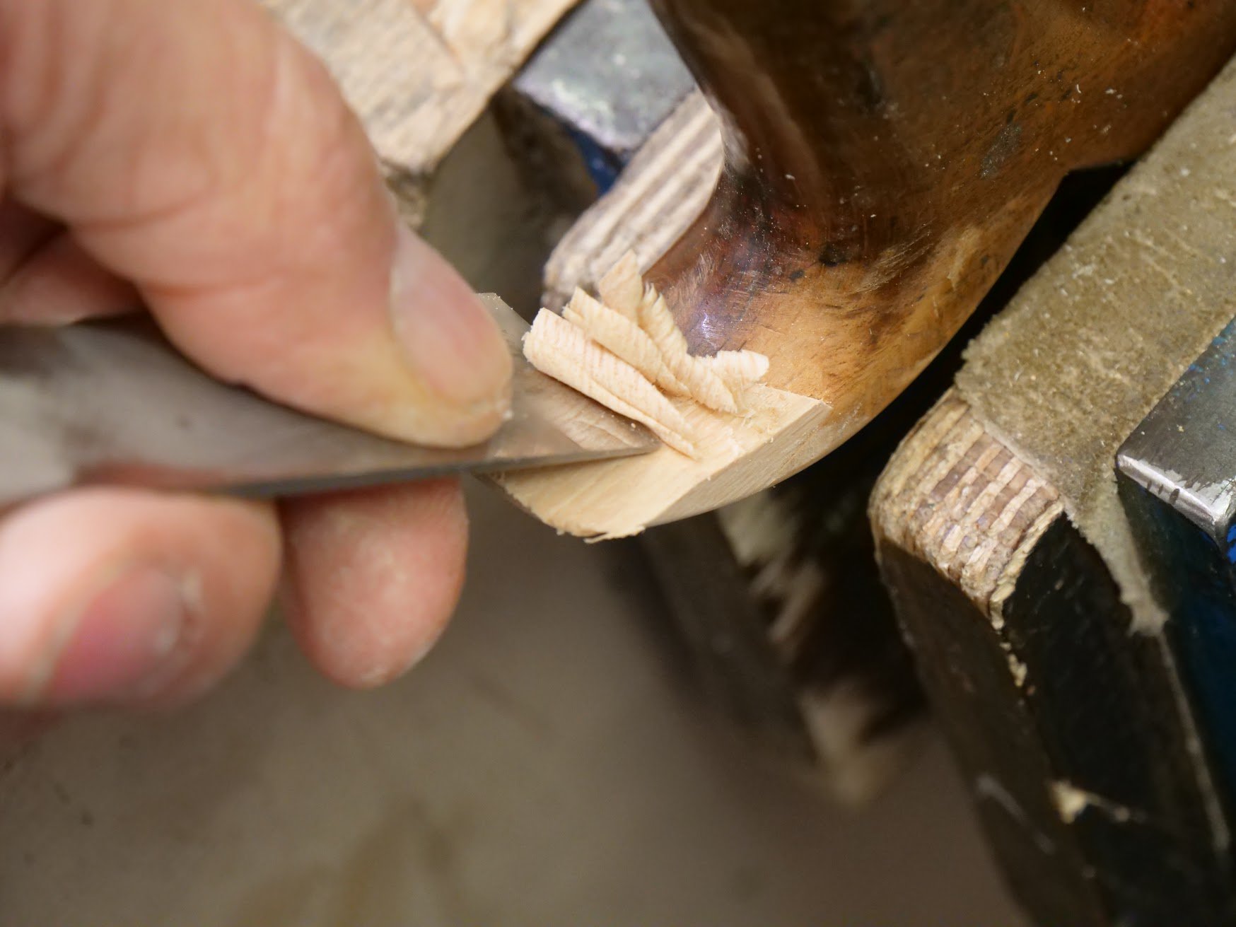 I then used a chisel and a rasp to refine the shape so it conformed with the remainder of the handle.