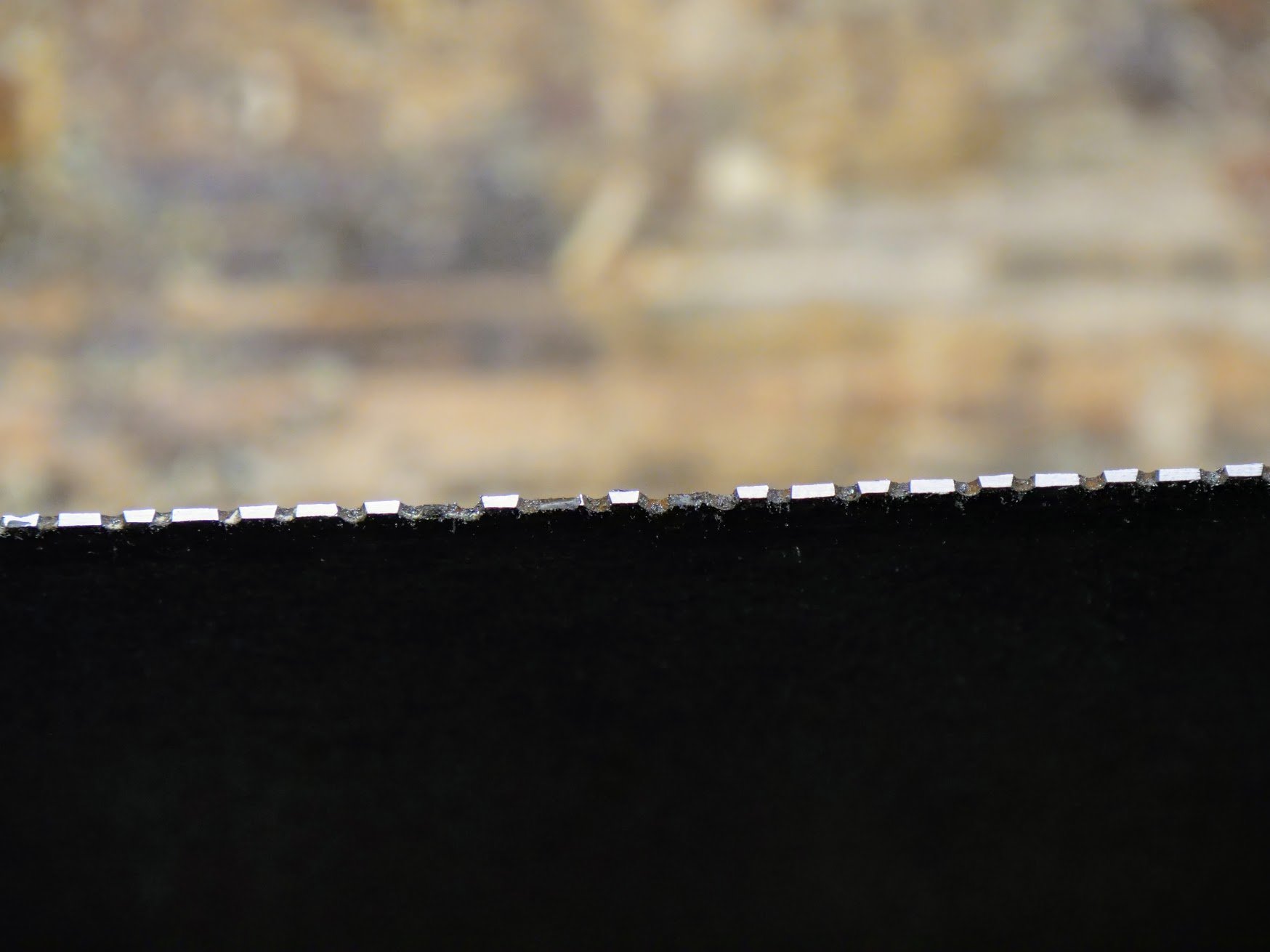 Five teeth were missing at this point but the teeth did not seem overtly hard as I expected. My next test for breakage cause was to remove the set by hammering the teeth back to surface level and out of set.