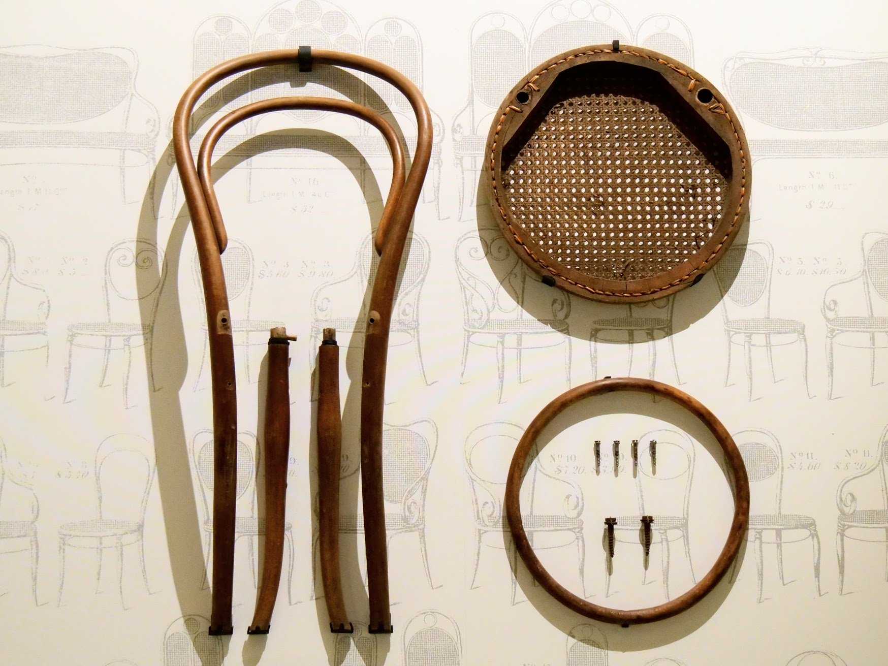 Even in the mid 1800s, Thonet products required only the most basic of hand tools with all of the parts coming straight from machine cuts to unite the simplest frame parts together. The Thonet versions of family and cafe dining transformed the world of design in its own peculiar and unique way. In production time, stacking up the minutes, Thonet developed his range of chairs that took only a few relatively unskilled assembly minutes to assemble. The low production costs, ease of manufacture and removal of almost all joinery, revolutionised chair making. No woodland chair bodging for Michael Thonet or his staff, no bent saplings to drive pole lathes deep in the woods, no masses of greenwood legs roughed out. Thonet took a massive slice of the cake when it came to production making. His chairs have been proven to stand the test of time through a century and half of daily use in the rough and rugged conditions of cafe and restaurant use. Don't you just love what this assembly line chair gave to us?