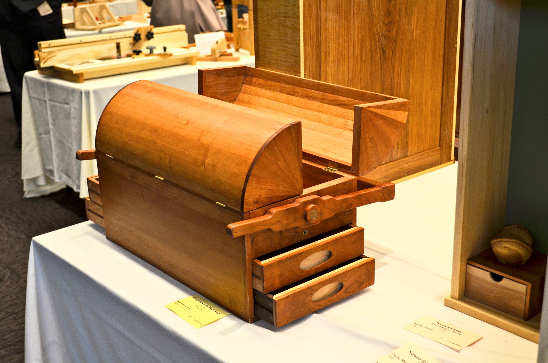 The reason I am doing this now is because it needs planning ahead for. You need time to pull it all together because to take it all in will take you the full two days of the show. The show itself is a sort of jewel of shows but the true jewel in the crown is what takes place behind the scenes in months of planning and preparation—woodworkers serving fellow woodworkers in providing hands-on training, workshop space, scholarships and so on in a spirit of generosity, caring and sharing. The images here are what you will likely find at the show. I took these in 2012, but the standards of the show always improve so I have no hesitation in posting.