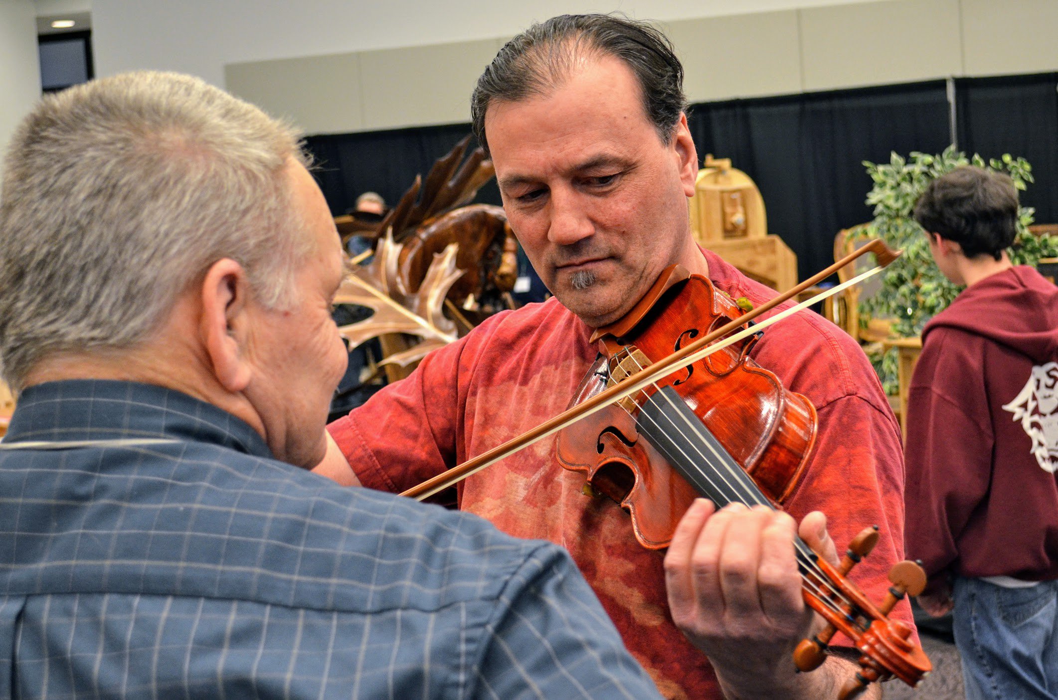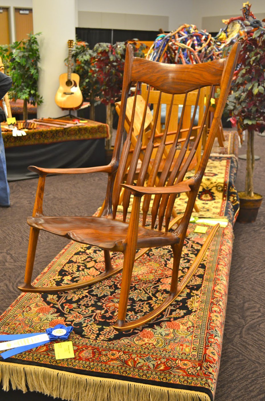 At the show you'll find different types of art work with a woodworking theme undergirding everything. The guitars and violins for instance should wow you and of course a close friend, Marty Macica is a highly skilled maker that teaches instrument making as well as makes them.