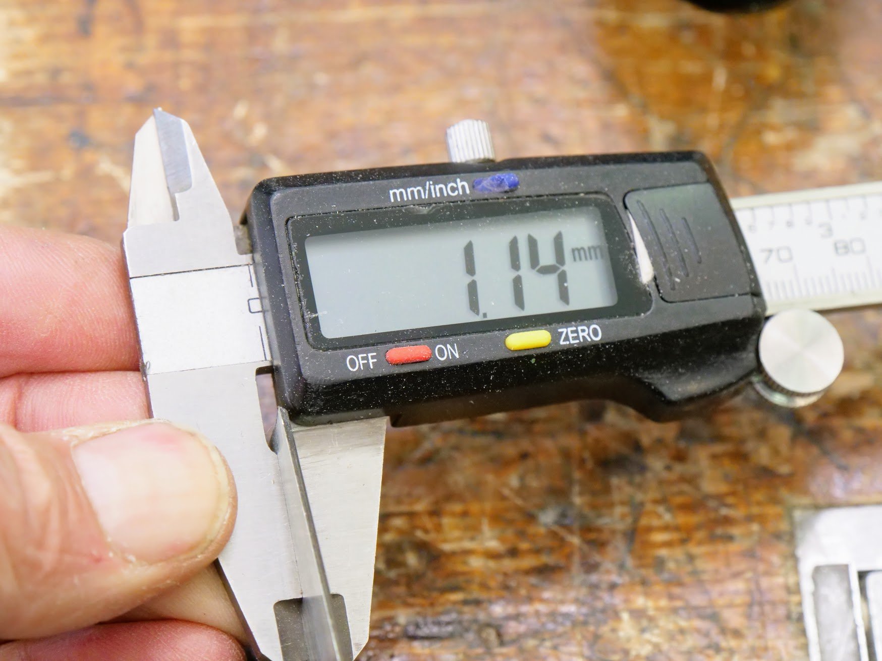 I liked the price. Not expensive for this quality of manufacturing. £28 is about just slightly over one third the Veritas scraper price. The thing that frustrated me the most was that new woodworkers would not have the working knowledge to see the problems straight off. They would most likely see themselves as the problem or not realise they could make it work. They might also think that the tool generally, i.e. the #80 is just not good tool. With no in-package information available with the tool it is understandable they would see themselves as the problem. The thickness of the steel on Record and Stnley as standard is around the 1mm plus side. The Rider is an impressively thicker iron at 2.87mm.