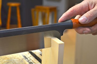 I use the word 'steer' decisively because sawing and tool use can indeed be a bit like steering a car or a bike. If you hold the car steering wheel bull-dog rigidly it's likely you will crash because you have not got the flex you need to steer the car according to the nuances of the road and the tolerances in the mechanical linkage of moving parts in the car itself. Anyway, at the end of the day it's about a crafting man and woman relying intuitively on their muscle and tendons to steer and guide. The small shifts make the big differences to the whole. Linkage needs flex when related to hydraulics, valves, pistons, muscle and sinew. In my world I make my decisions based on a right earned by accepting these early disciplines in my life. I understand the essentiality of being flexible because I must move my whole body in relation to the hand on the saw handle to make my cuts in the places of exactness I demand of myself. Alongside this, coupling it to me in my ongoing research and study, I find integrity in my working of wood when it comes to every element. I look always for the hidden skill, skill that then lies deep inside the joints I make. It's called integrity. I don't ever look for ease as such, or dumbed-down alternatives in methods that deny me achievement. Woodworkers regularly ask me why I don't gang up the cutting of half a dozen dovetails to be sawn through all at once. It's mostly because I know where the question comes from.