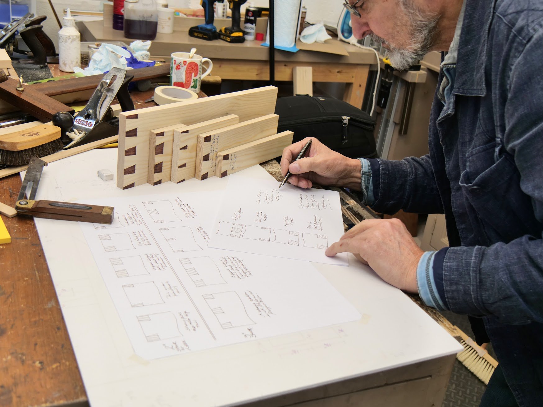 This alone makes scale and proportion almost impossible to standardise using non mechanical means. Mostly it comes down to what aesthetically pleases you. Because most customers know so little about this element, they simply cannot generally care too much about these proportional sizings; they are relying on you and all they actually want is to see dovetails. One thing they generally know is that dovetails are the magic joint that holds all things together for life—hand made means dovetail joints and seeing dovetails leaves them feeling secure.