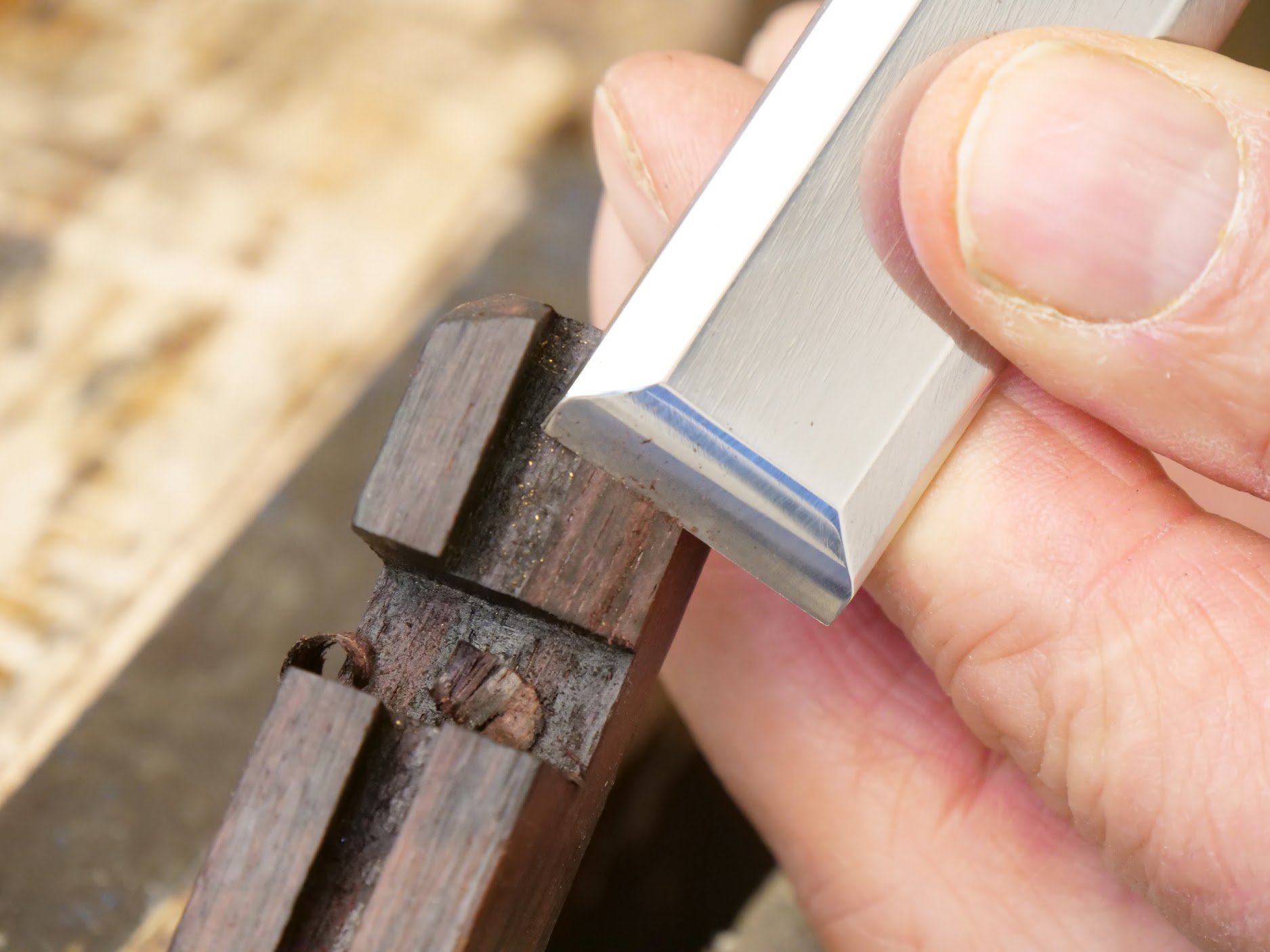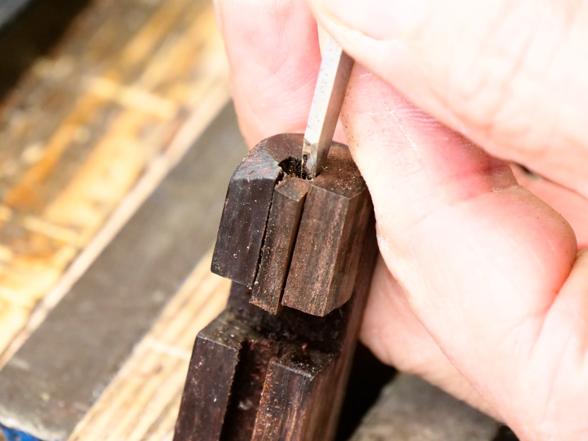 Then I had to make a groove for the threaded brass rod which I did again using the small saw and the same 3/16" chisel.