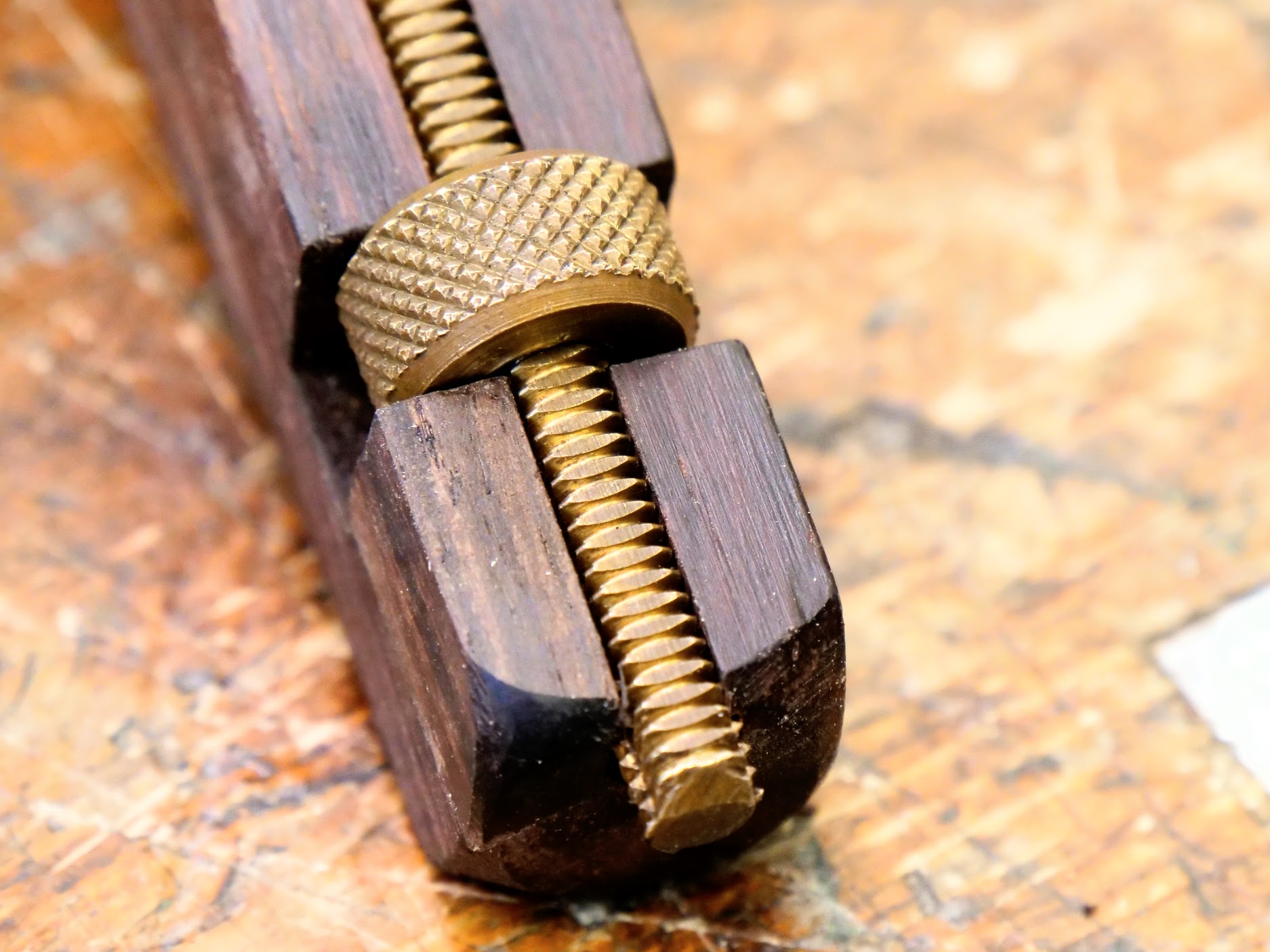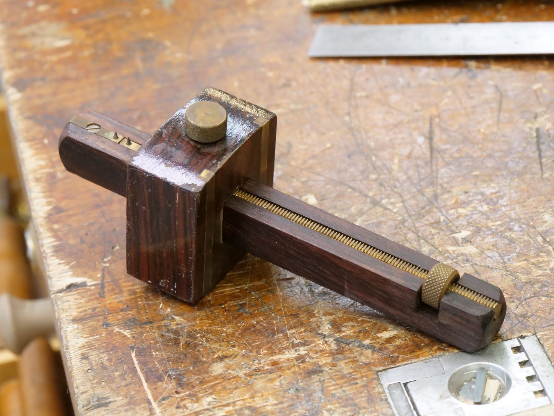 But anyway, I liked my new and very rare find even though I didn't actually need yet another mortise gauge. Mine arrived with the damage part to the wooden stem as shown in the eBay photographs. For £12 and free shipping, how could I not buy it? The fix would be a breeze, 15 minutes work. I had the darker rosewood to do it.