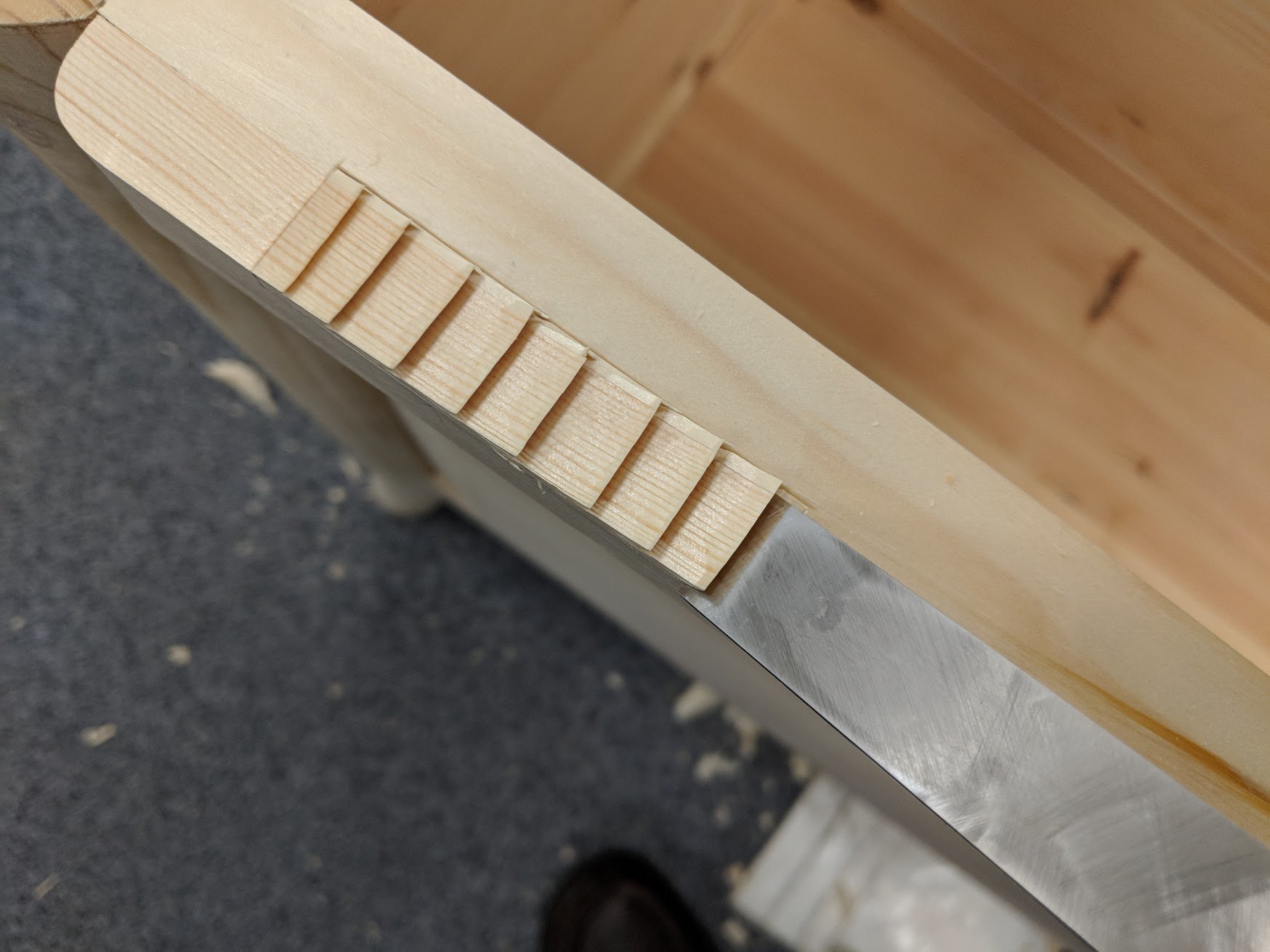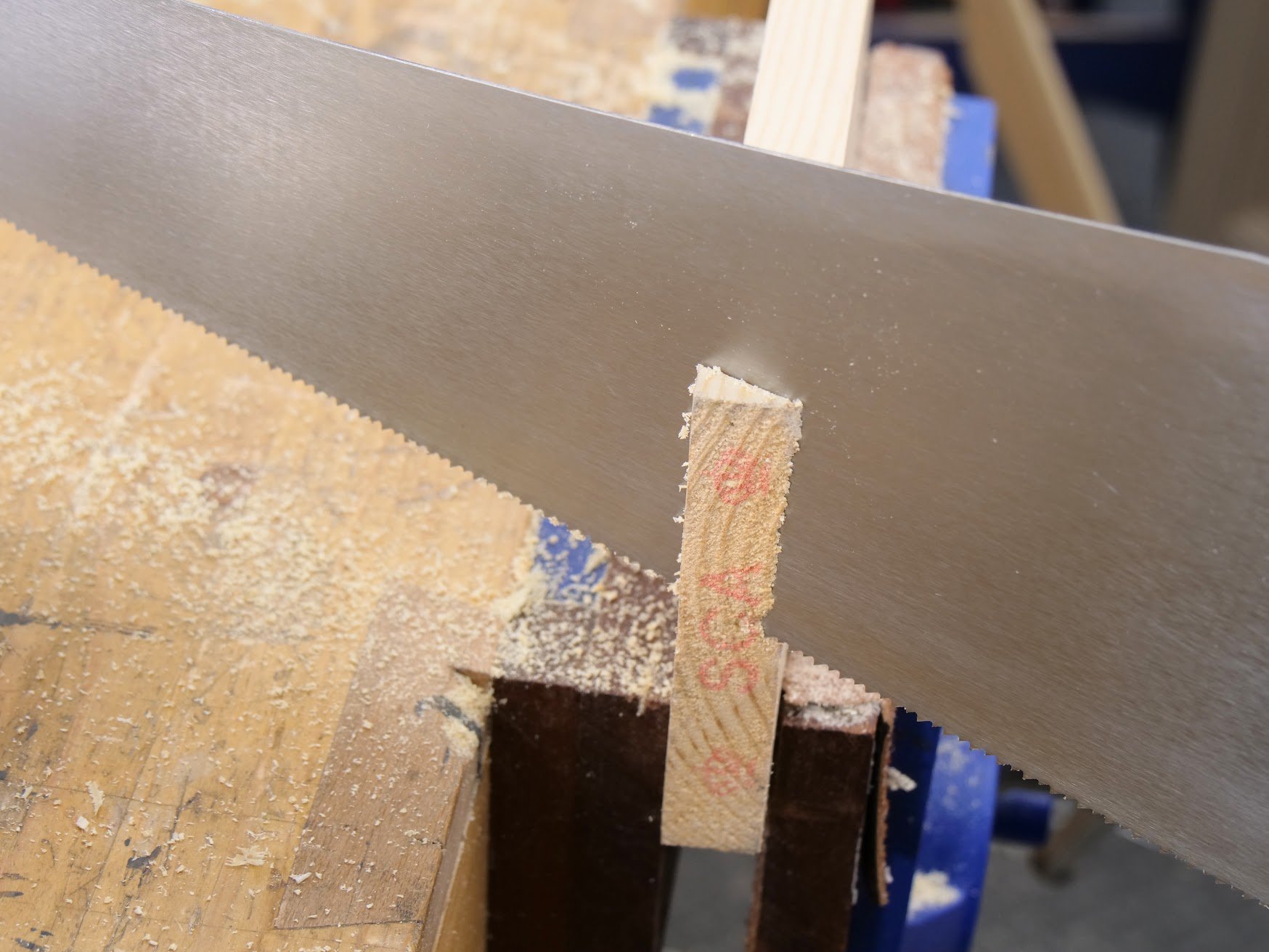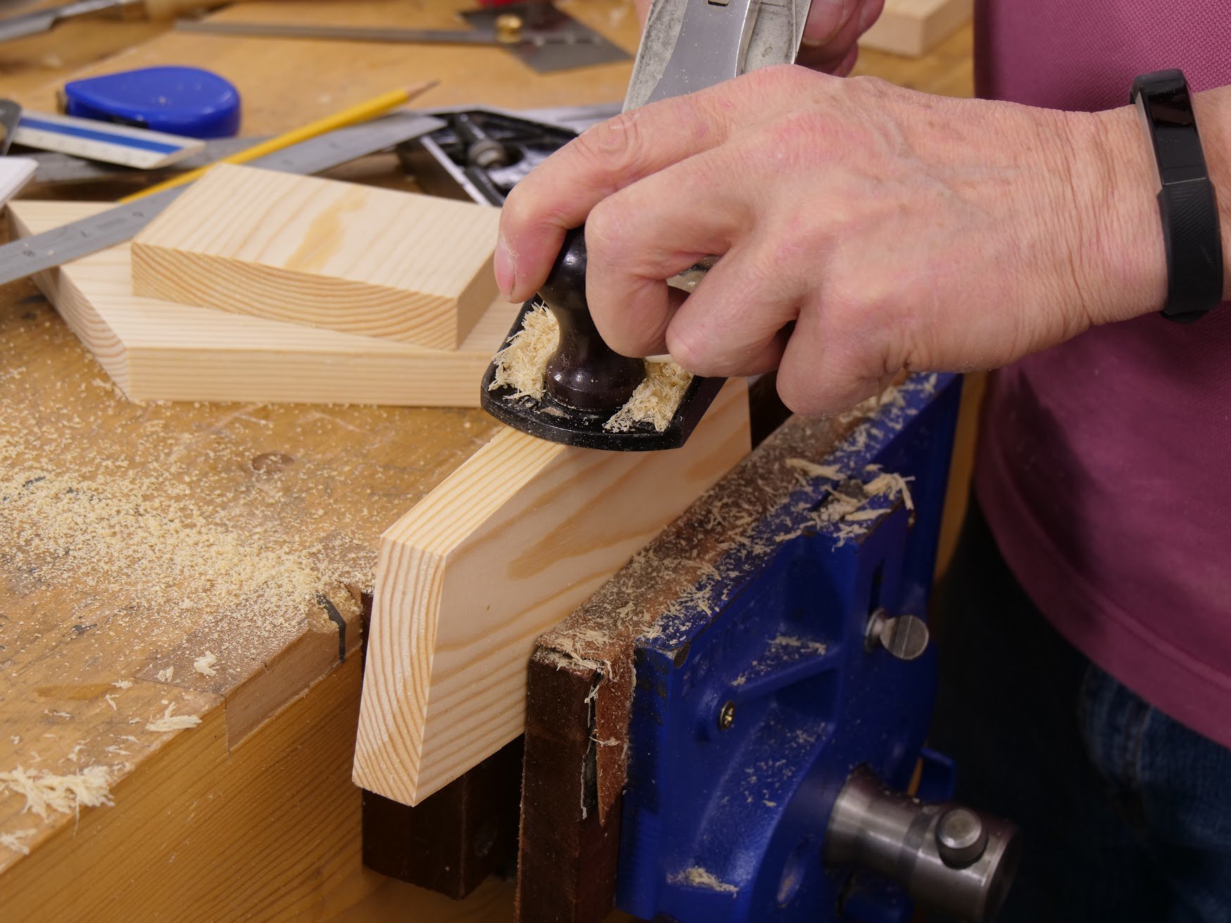 Plane the end grain of each piece cut to the knifewalls. Remember to work in towards the middle from both sides to prevent blowout!