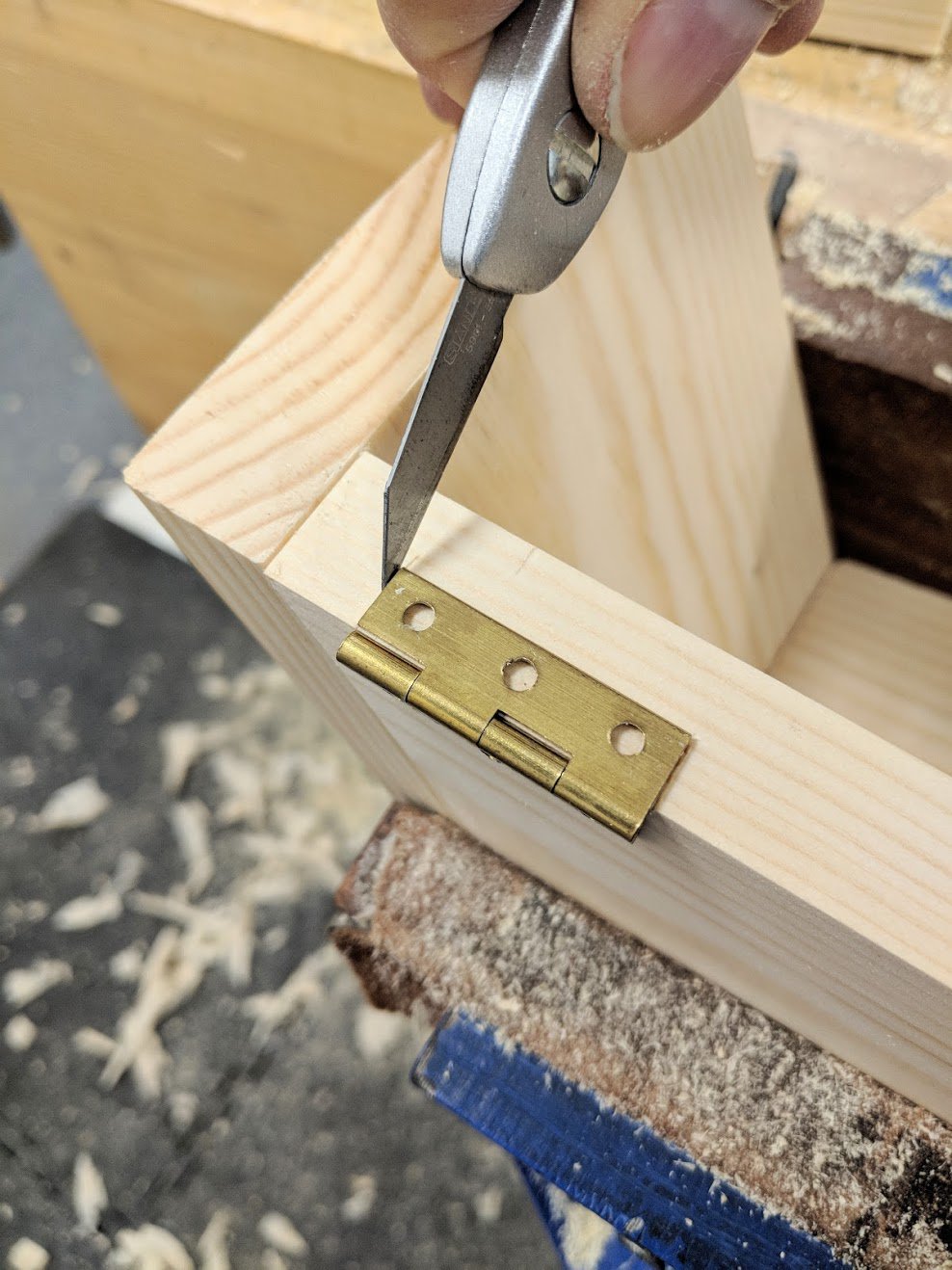 Screw through the back of the back piece into the box side and bottom. The bottom piece is 1" up from the bottom edge of the back piece.