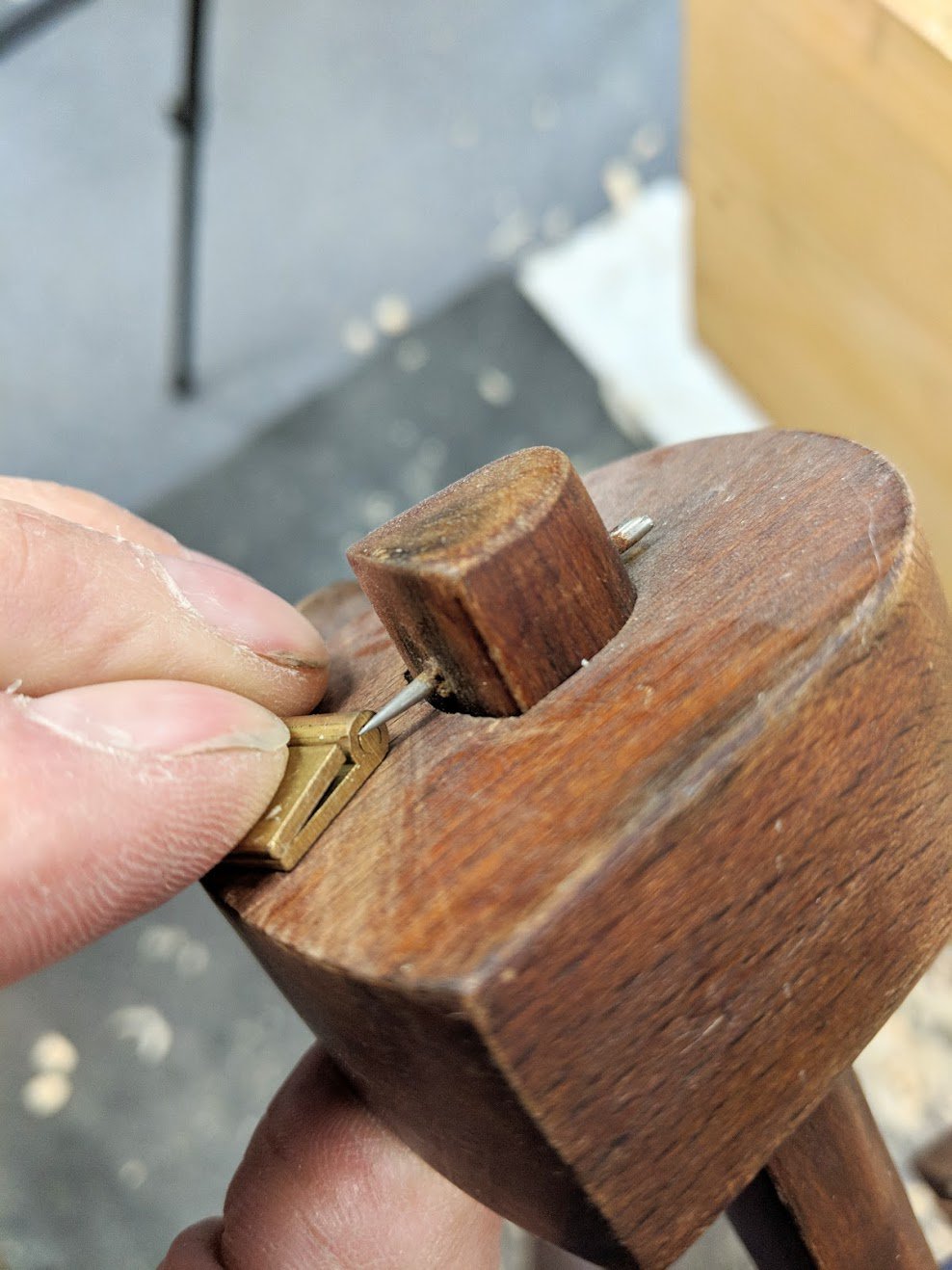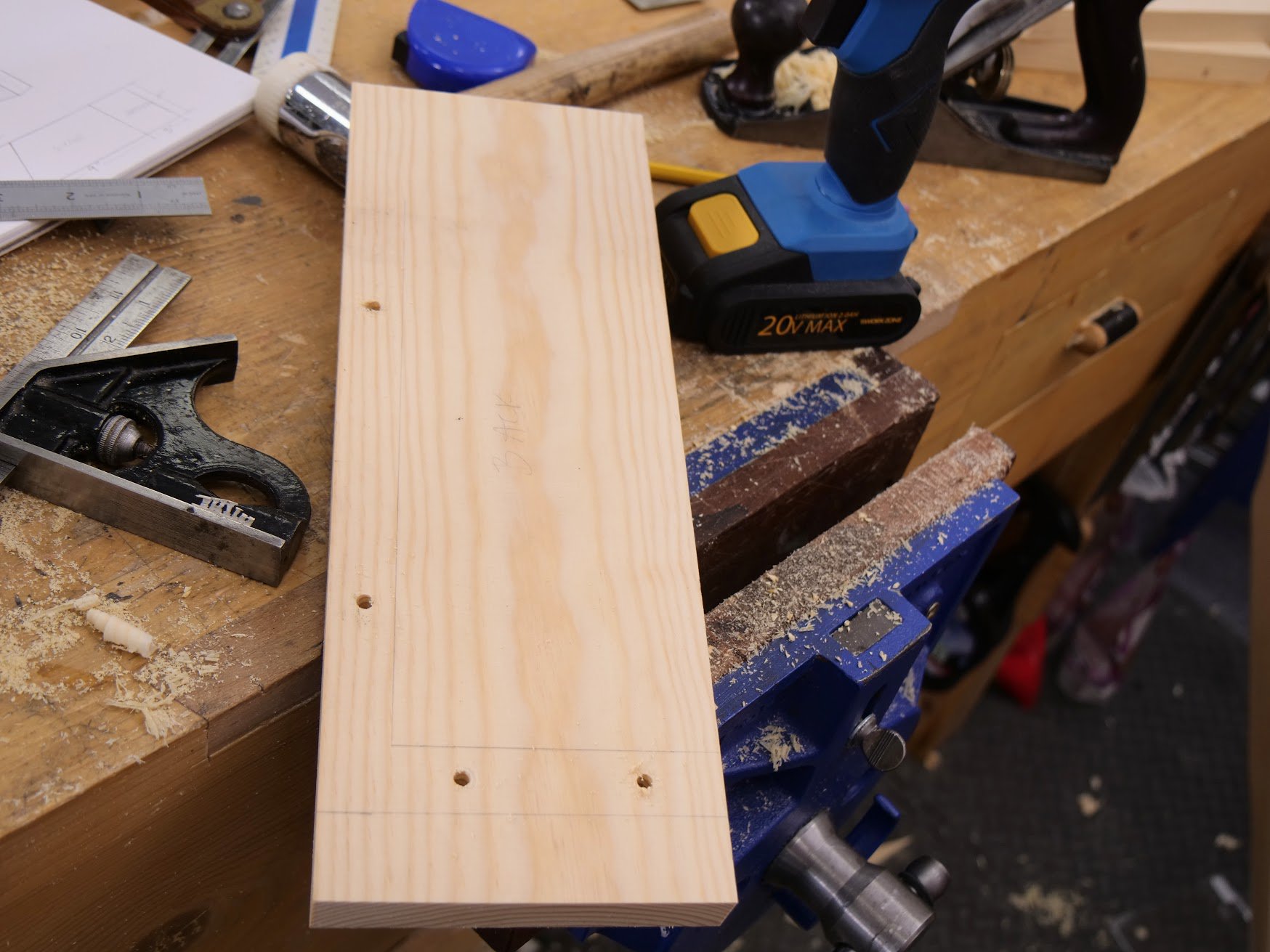 Mark the position for the hole centre on the front piece 2 5/8" down from the underside of the roof piece and centred from either side.