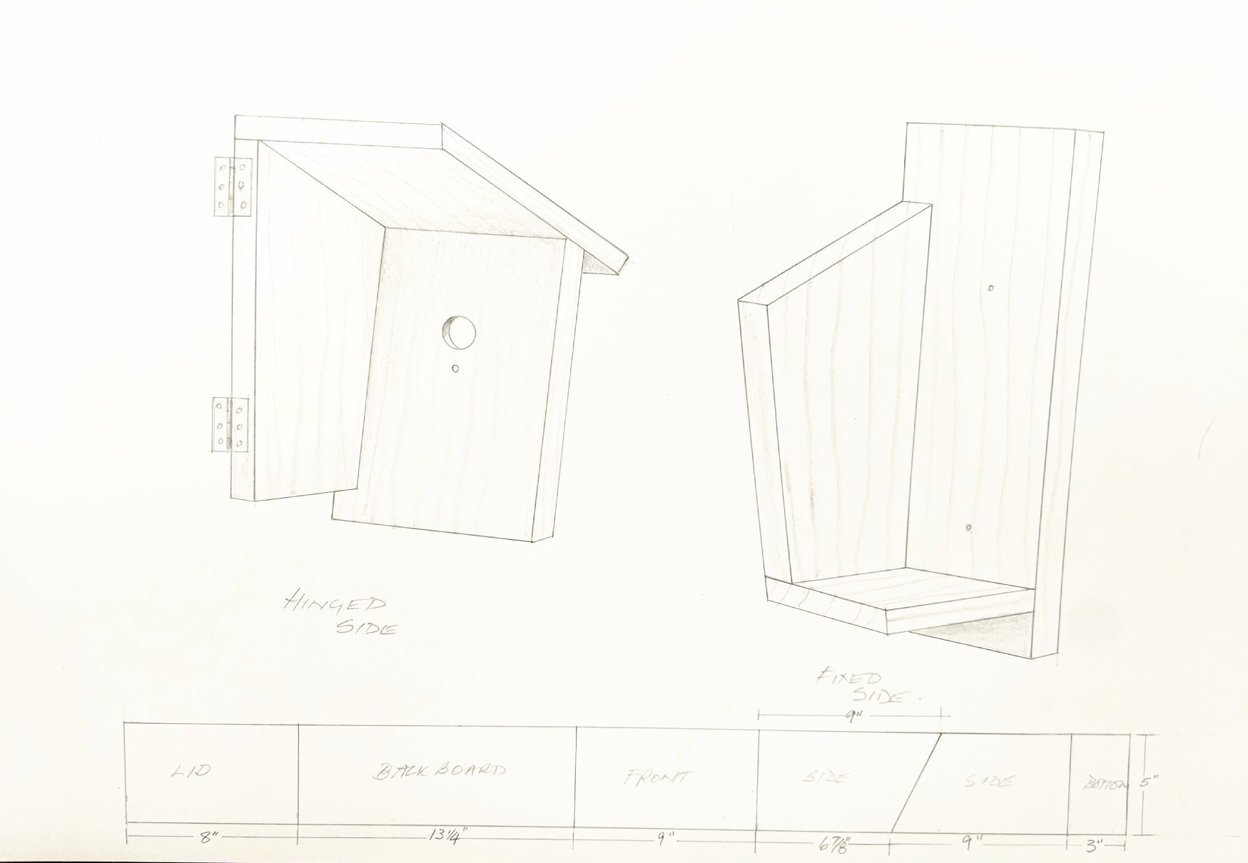 The size of this nesting box is good for wrens, titmice, chickadees and other small cavity nesters. You can scale the box for larger species and size the hole to preclude or include whichever you want. 1 1/2" for Bluebird, Chickadee 1 1/8", Titmouse 1 1/4", Nuthatch 1" to 1 1/4". Place 5 to 10 feet from the ground for any and all except the wren house which has a 1 1/8" hole and should be placed 3 to 10 feet from the ground.