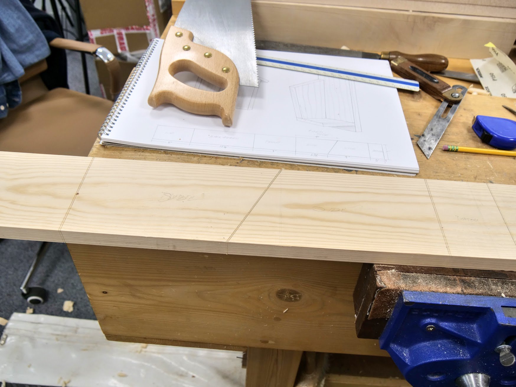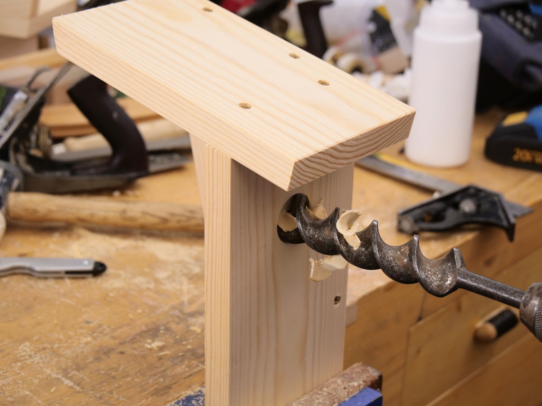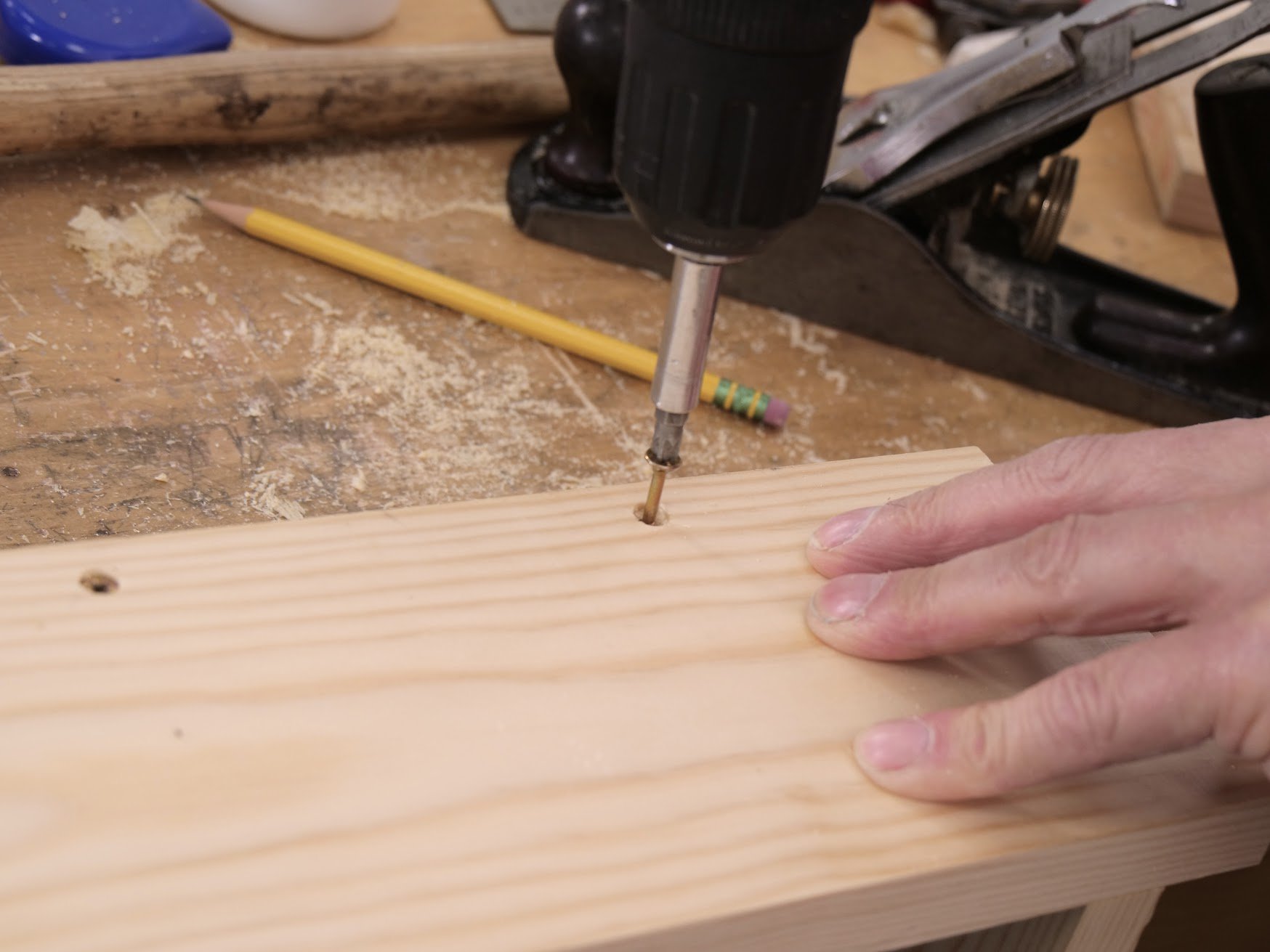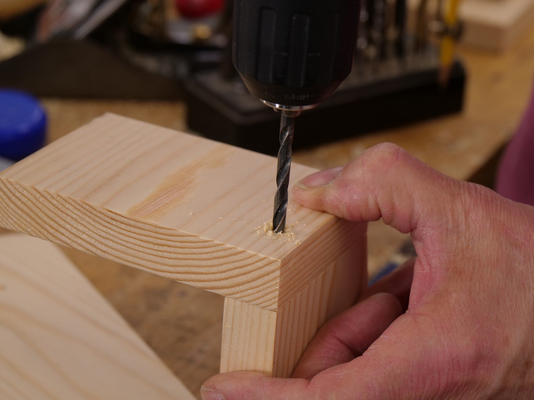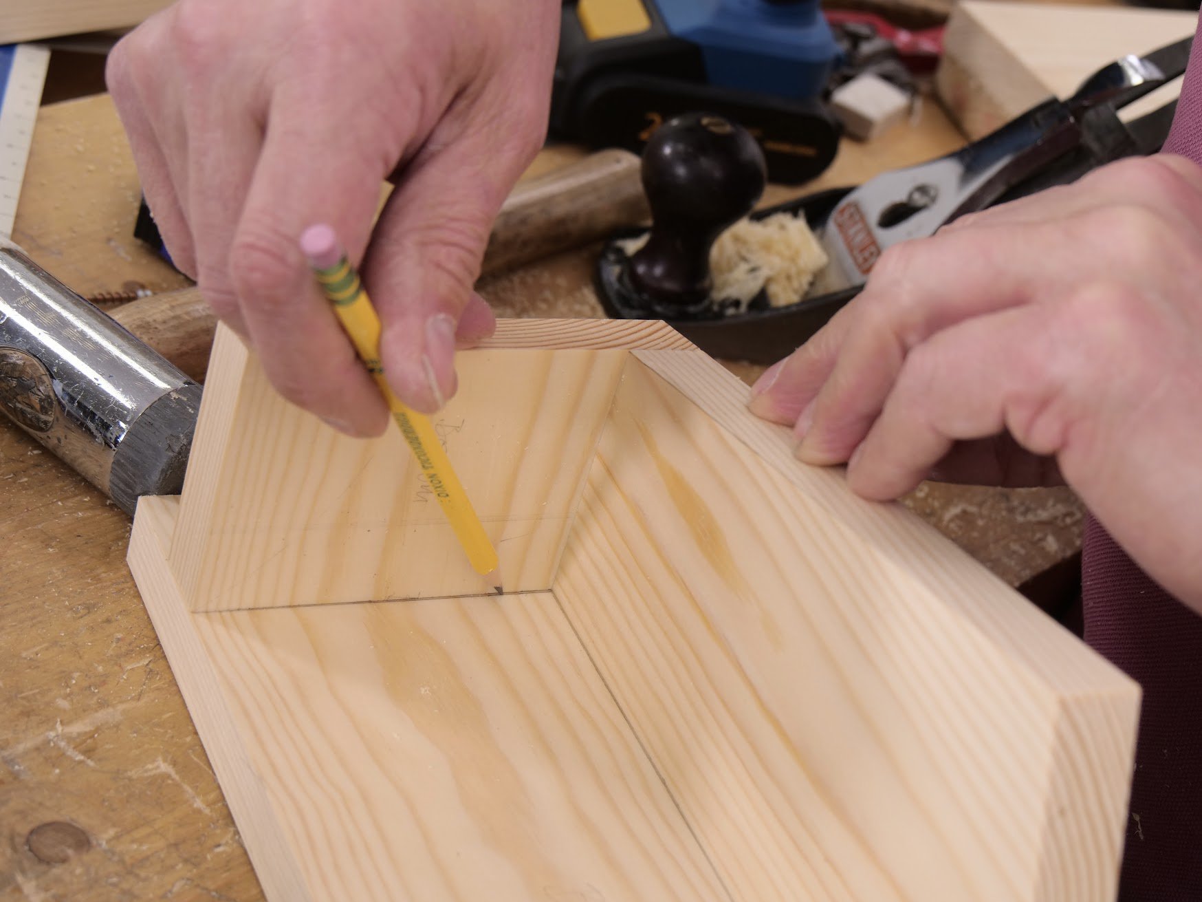 Now attach the front piece to the side piece with two screws. Plane the angle to the front piece top edge to follow the rake of the side piece.