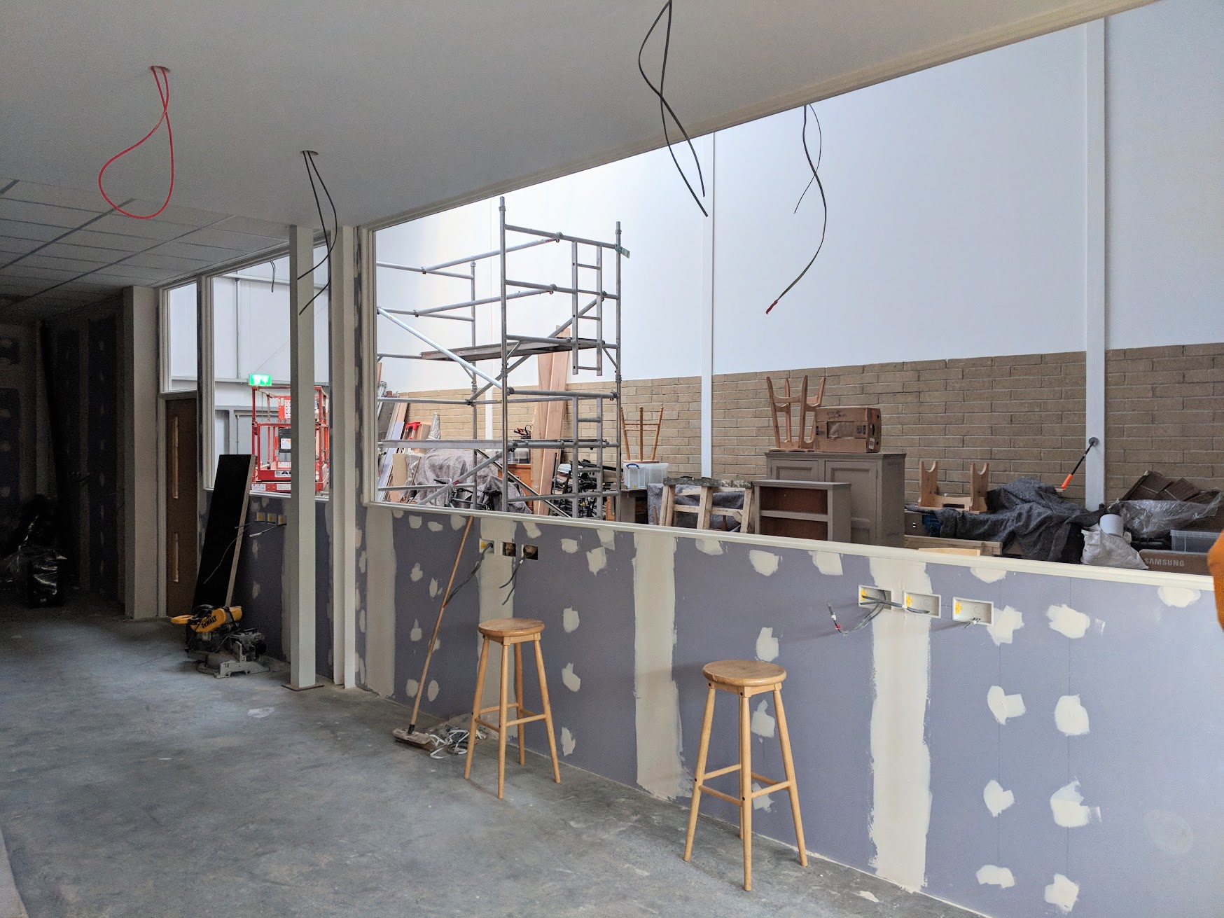 The thing about all of this is that if someone prefers machines all through their work that's fine. What's wrong is that richer people often think that all people throughout the world can indeed afford what they buy as a drop in the bucket to their wealth. So here we are, my garage, walls in, ceiling up (kinda sorta) and I am feeling distinctly unsettled and settled all at the same time. The workbench I will be using is the one we made for the video series, the garage size was taken from my home garage. I have room for one machine but could probably make two others fit in if I wanted too. I don't. Standing amongst the sheets of plasterboard and scaffolding reminds me that workshops are indeed often temporary, what's permanent is my workbench, my hand tools and my skill. With these, when they are united together under one roof and within four walls, I am the happiest of all. Now the three areas leading to contentment are at least under one roof be that unusable for the minute. In about 10 days time all of that changes.