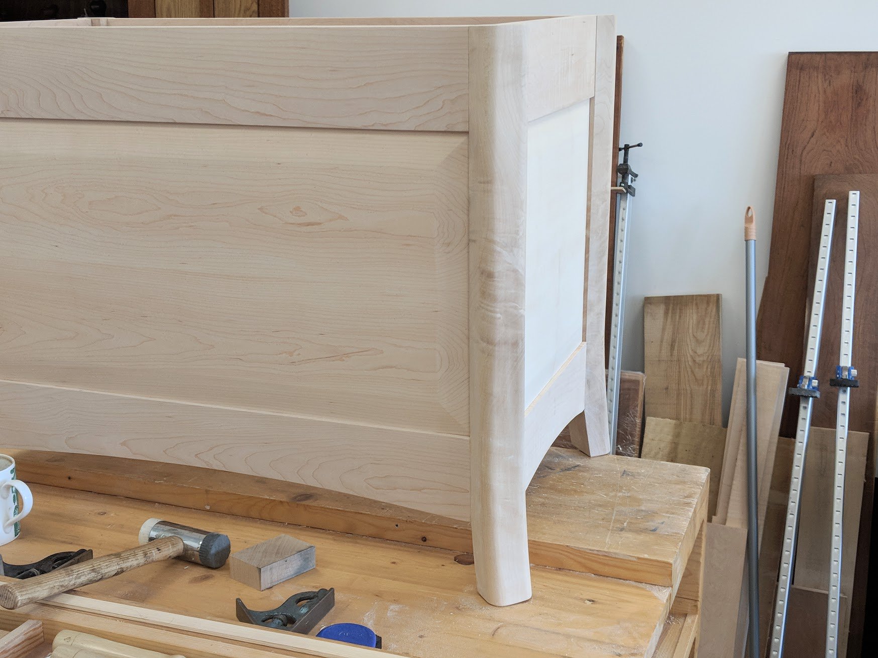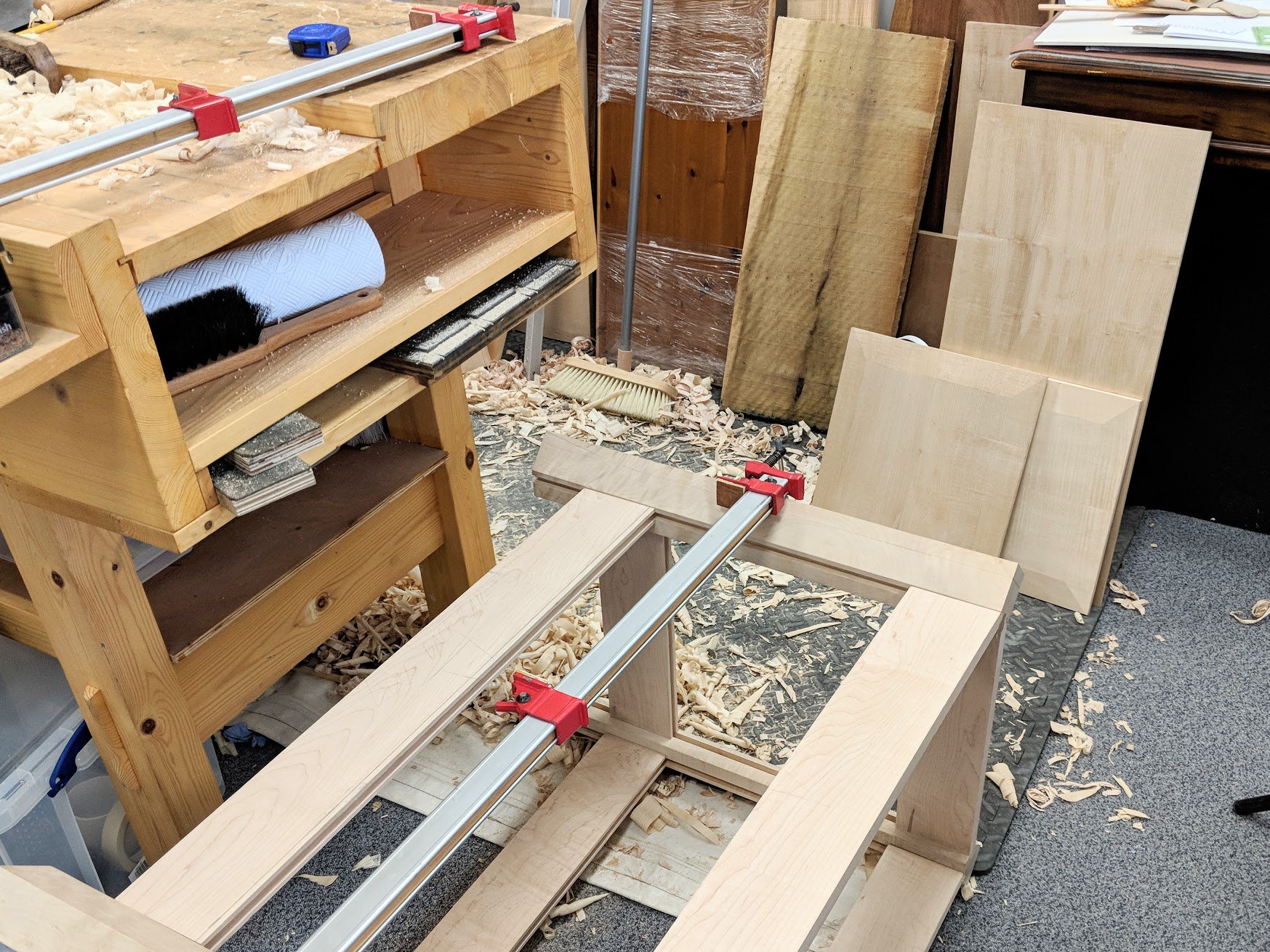 Whereas I will be building everything for the houseful of furniture right here in the garage, we are setting up six of the school workbenches for our staff to work on during their workday. These benches will also be used for training others too, Hannah for instance will continue her training here and she will have a dedicated space for the coming future. Izzy is working with me for something we have called 'Common Woodworking'. It's our way of covering the basics of woodworking so that people can follow our suggestions for getting into real woodworking.