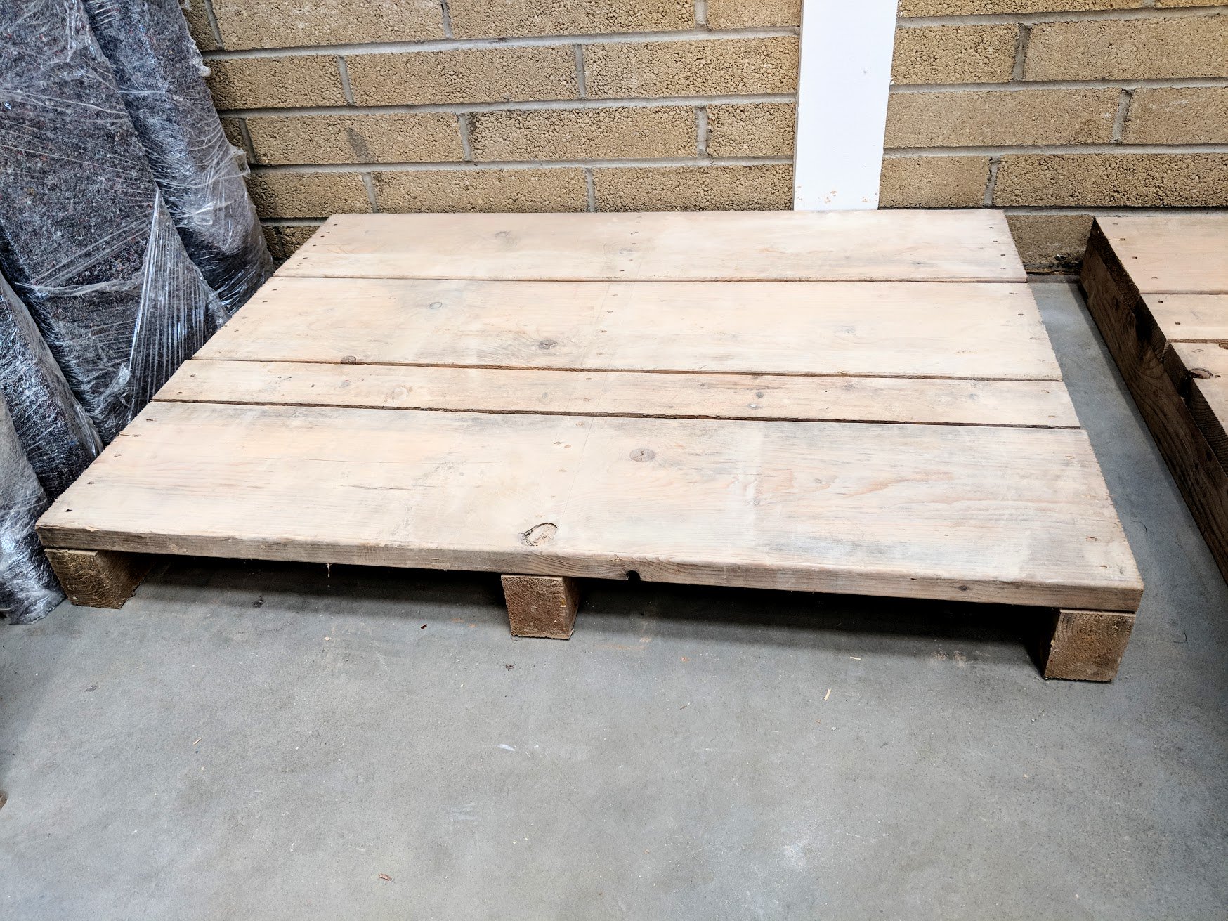 As it is with most woodworkers, I keep wood in stock. Not a lot, not too much, about enough to pick through when I am ready to start a new project. It's good to have a project in mind and buy ahead accordingly where possible. I have always liked to keep the wood around for a while before I start working it so that it can acclimate to the shop, releasing any excess moisture ready for the drier places it might end up in when the piece is finished. Generally I am talking about good wood I have bought or had milled for my work and not say pallets. Whereas recycling pallet wood has merit, I've yet to see something truly lovely made from the wood. Mostly it makes us feel better to become more nonsumerist to use up what might otherwise go to a dump or end up as only fire fuel. Perhaps I should set myself the challenge to prove myself wrong and make something lovely. That's not a bad idea. Most of what's seen made from pallets is unskilled workmanship commensurate to the material. But I have seen somethings made from unjointed, screwed together functional pieces that, well, I quite liked too. Anyway, no matter, I have kept some pallets through the years and put them to good use. When I look at a pallet these days I look mostly for clear grain and find it without spikey knots—wood that can indeed be worked with hand tools like handsaws, chisels and planes. I recently found some heavy pallets to stack my stuff on too, for transportation needs in my moving palletised furniture pieces and then for temporary and permanent stowage. These were the rarer good sort of pallet. Not pretty, just stout and not throwaway stuff. Surprisingly a recycling wood outfit flung out these pallets for firewood so I grabbed them and repurposed them. With none of the usual gaps associated with pallets and solid two-by stock and 4 x 4 bearers it was a no brainer for me. Hannah and I have worked in some odd days to try to bring order to such a mass of things. Pallets are ideal if you have a pallet truck to move things around.