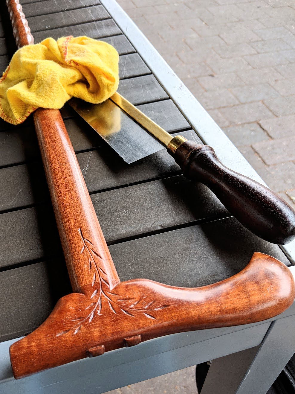 A few years ago we made the video series on making a walking cane. In some ways that was one of my success stories. Designing a cane and making a living from selling them throughout the USA, to provide for my family. Yesterday any elderly man walking through the supermarket trying to locate his lost cane. I've known him as Doug for about two years, since I moved to Abingdon. I said I have just the thing, Doug, a cane! So today he came in and I sized the cane to his 6'2" frame right there in the car park. He was thrilled and it was a double blessing for me seeing him walk away with the delight on his face. Being a craftsman, an artisan, is always about improvement. It;'s about improving life for others but then improving your own life by giving and selling what you make to enhance the life of another. This may be a boast, I'm not altogether sure, but I was delighted by the delight of another.
