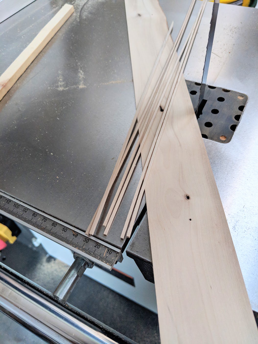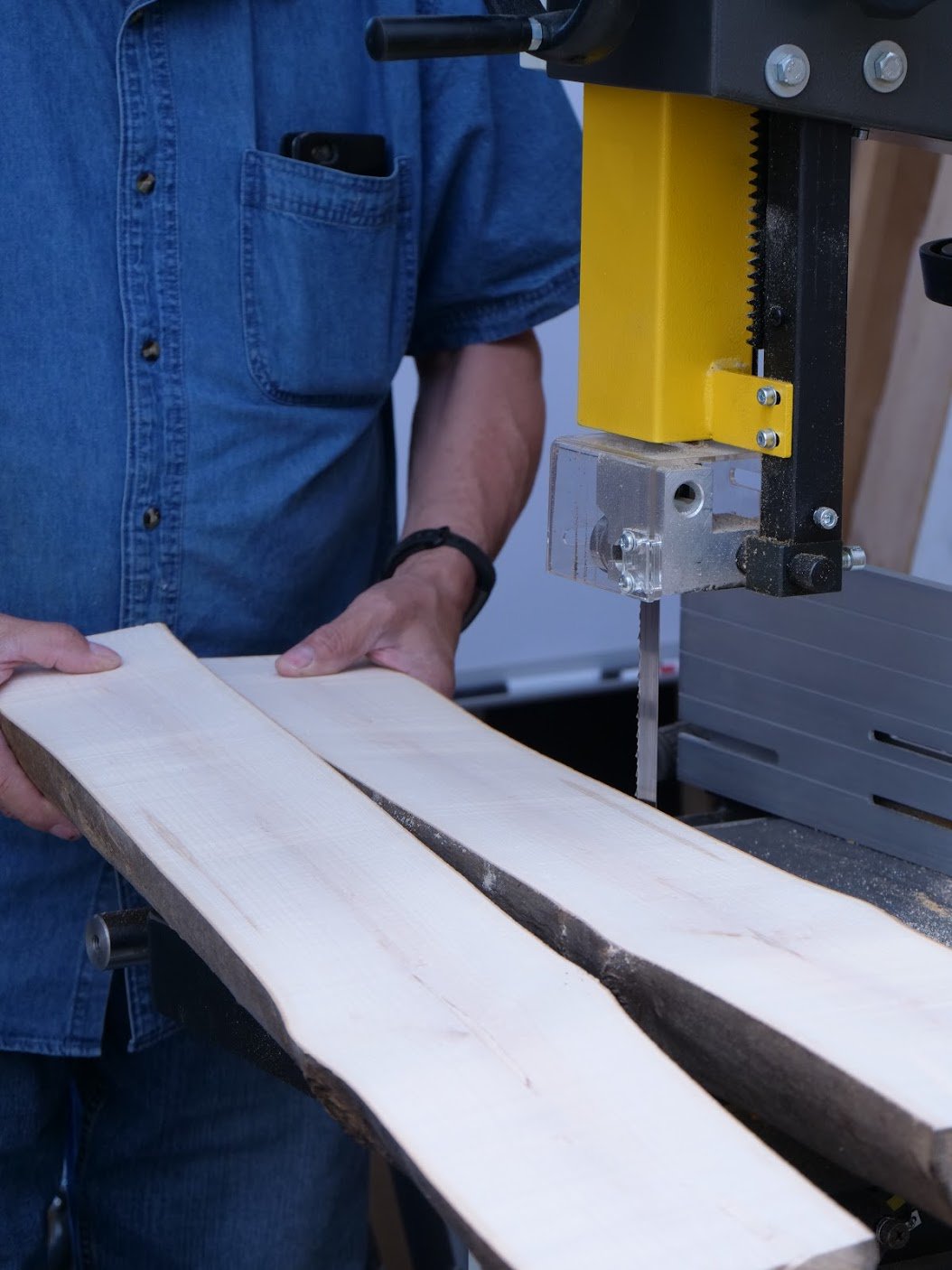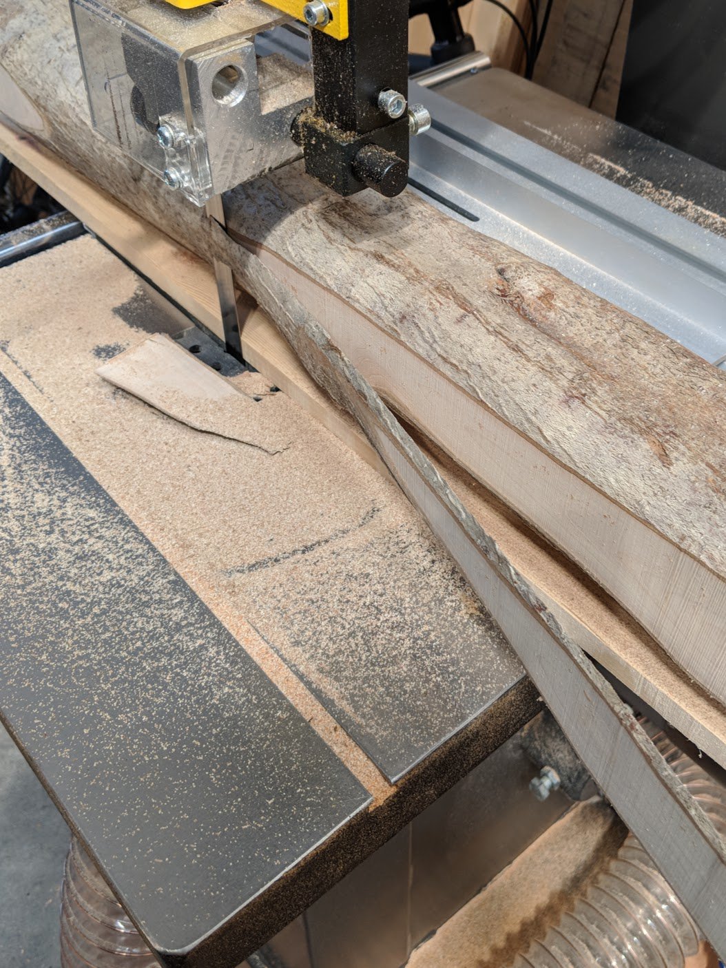 I finally got my bandsaw set up this week and the bandsaw blades came in too. I have ordered a variety of blades ranging from 1/4", 4 tooth skip tooth to 3/4" fast cuts with a variety in between in both variable tooth patterns and widths. The first blade I tested is a thin kerfed, fast cutting blade and I plan to run it until I feel it is no longer suited to the work. So far I have ripped and crosscut softwoods like spruce and pine and then 1/2" and 3/4" birch plywood and 3/4"Malaysian plywood. I had some rough-sawn yew 7" deep and the saw ran through it like a hot knife through butter. I had some short stems of ash and holly and took them from the round into squared stock. The ash was really beautiful and clear and I gained some 5/8" by 2 1/2" lengths and then a 1 1/2" 2 1/2" section. The holly I converted to sections also, of similar sections to my ash. Then I sliced some 3mm thick slices for inlays and such.