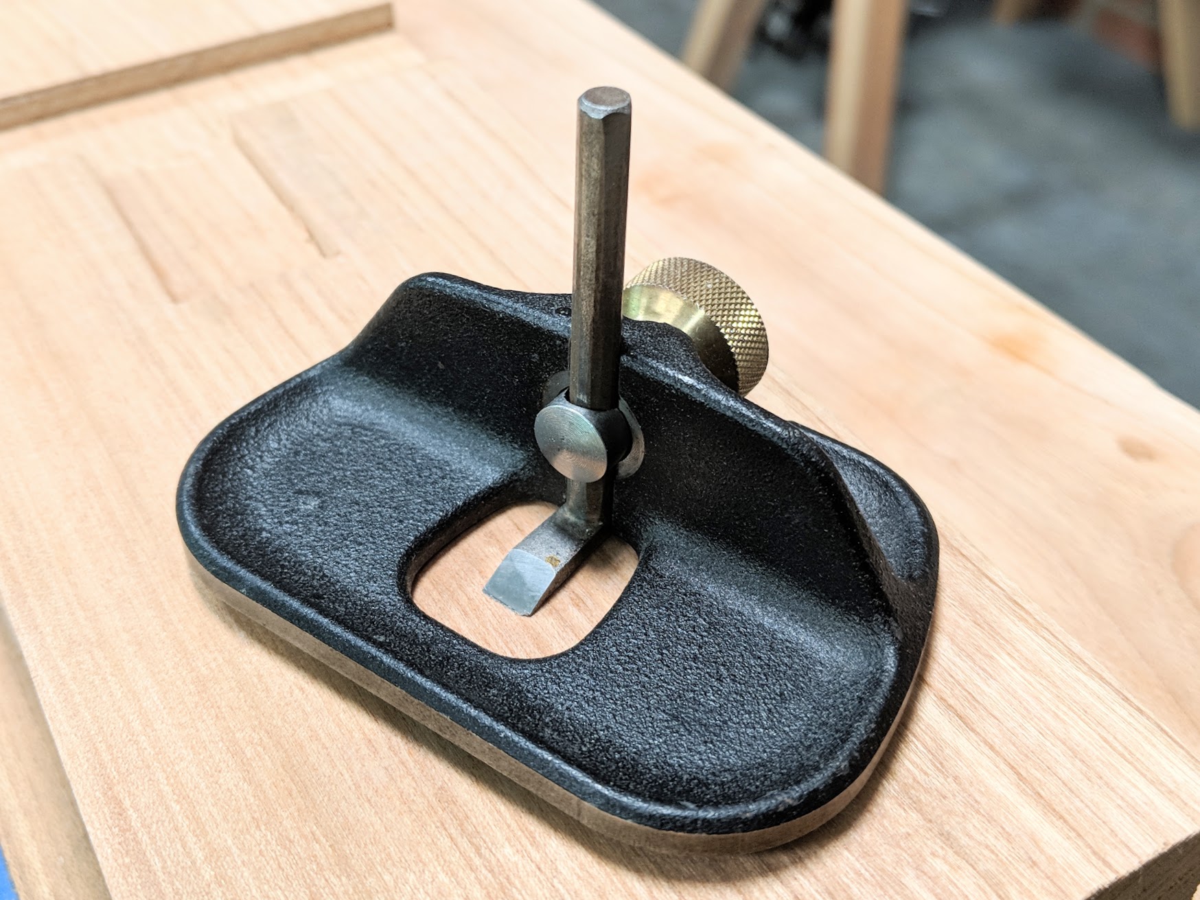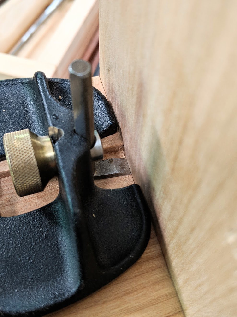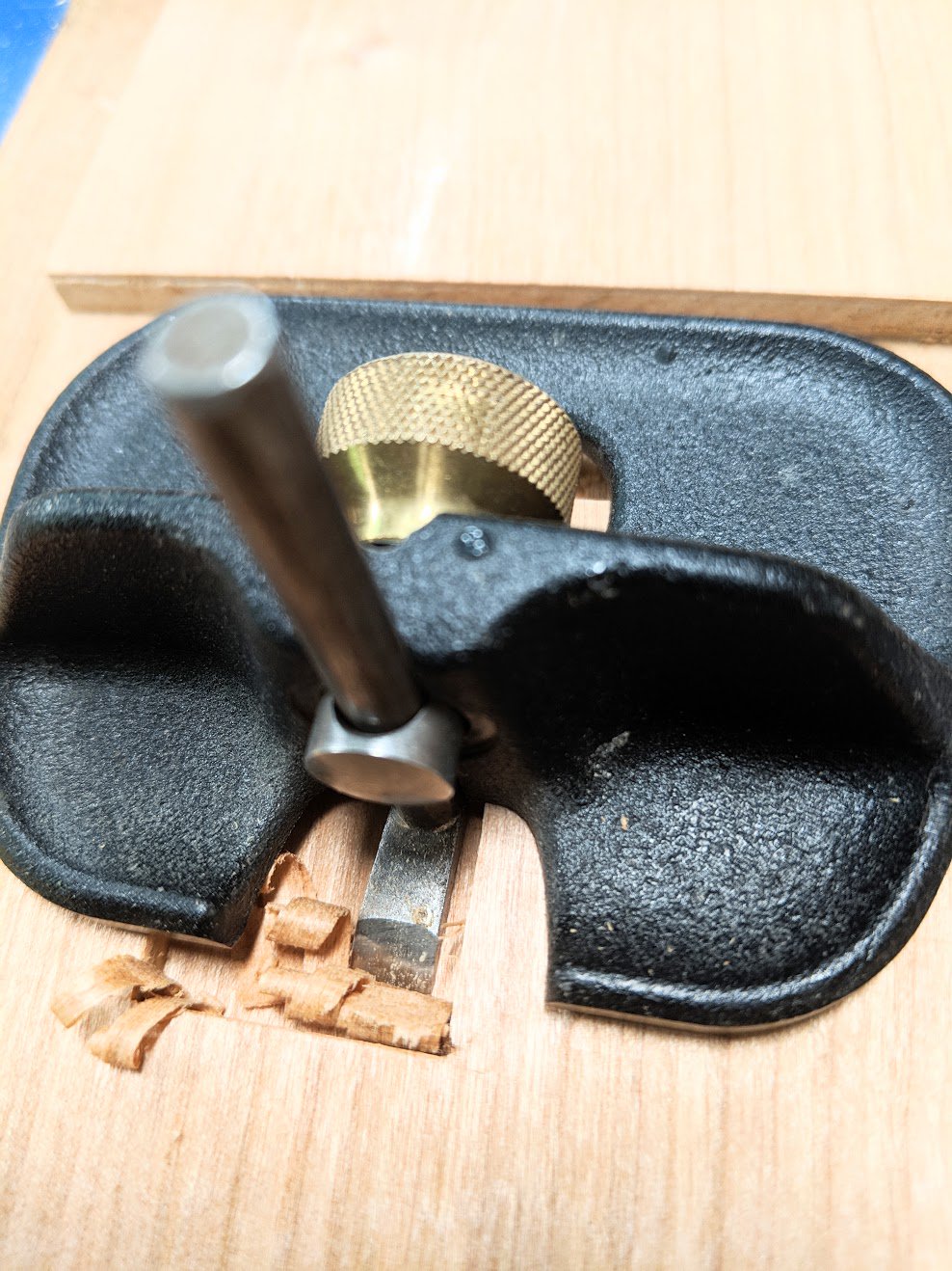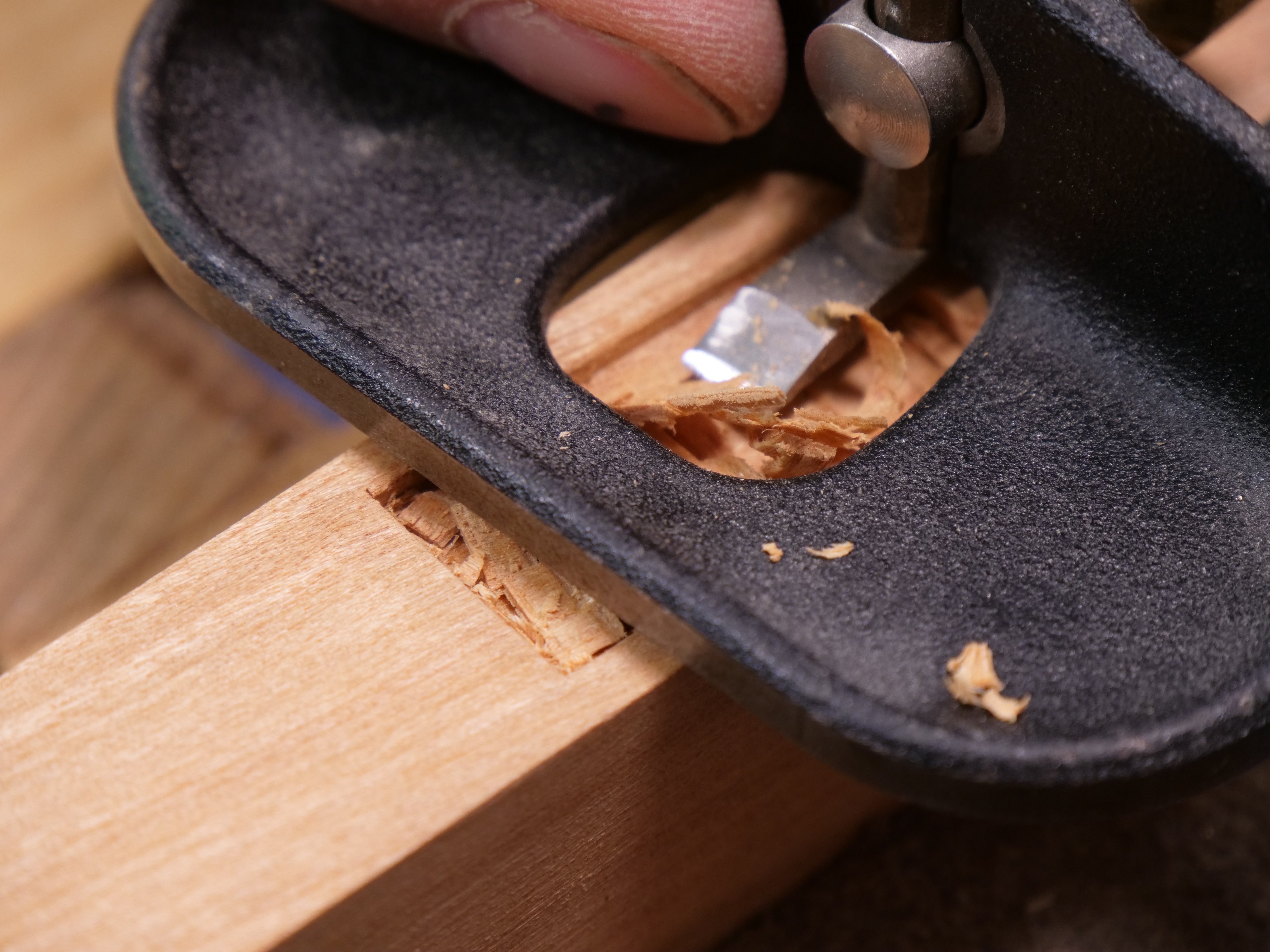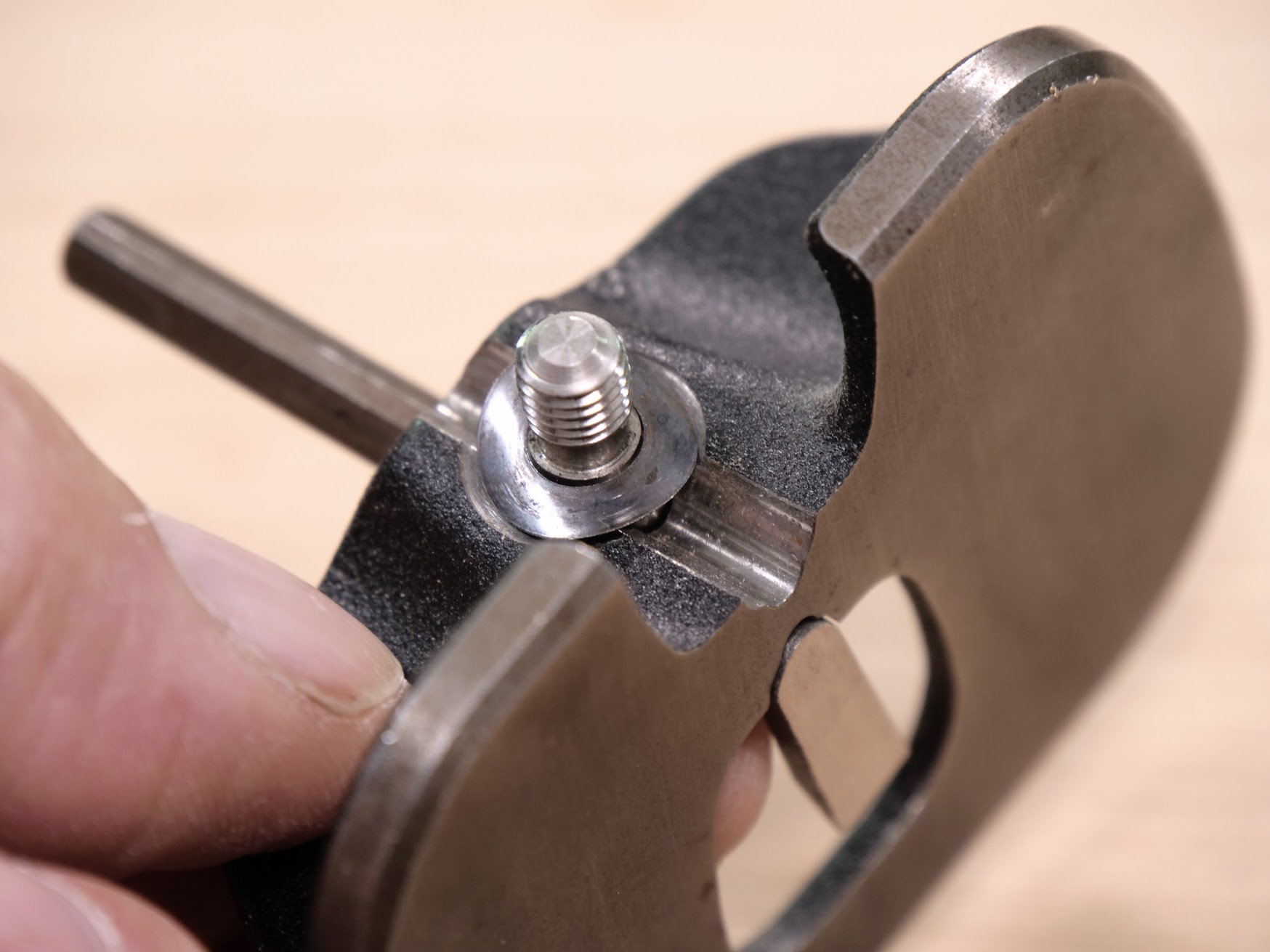 A criticism I first had and brought to the attention of Veritas was the annoying twist of the blade under pressure advancing into a cut brings. This and the fact that heavy pressure can pull the blade deeper suggests that a different locking would be better. The problem is that this would disallow pressure afforded by the spring washer.