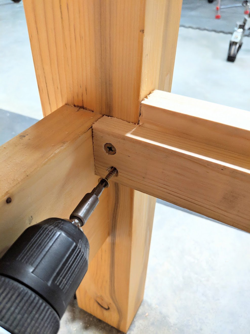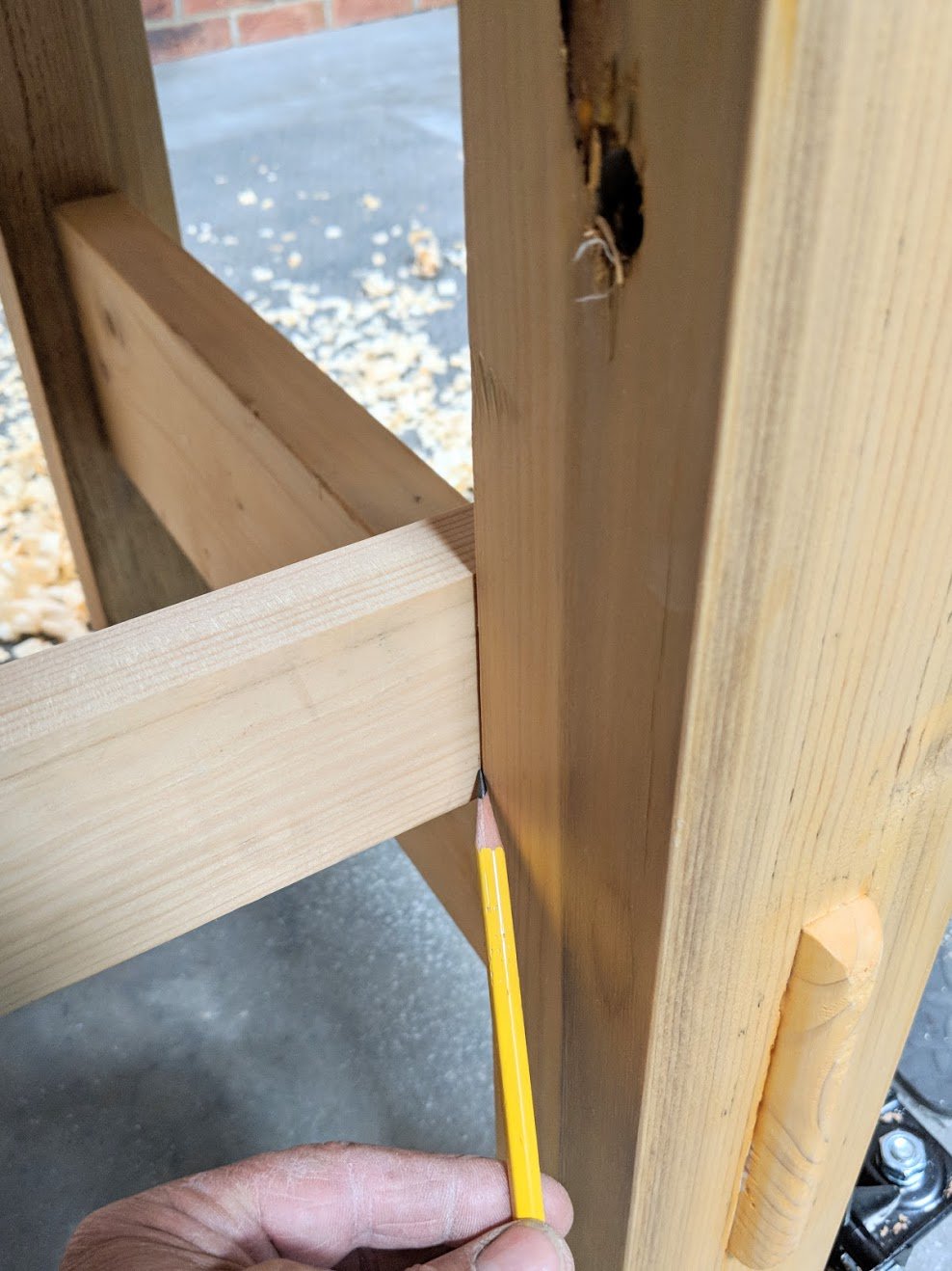 I placed the newly form support rails in between the legs and marked the final length directly off the rails and cut them to length.