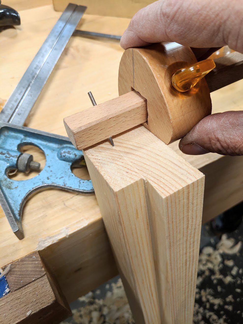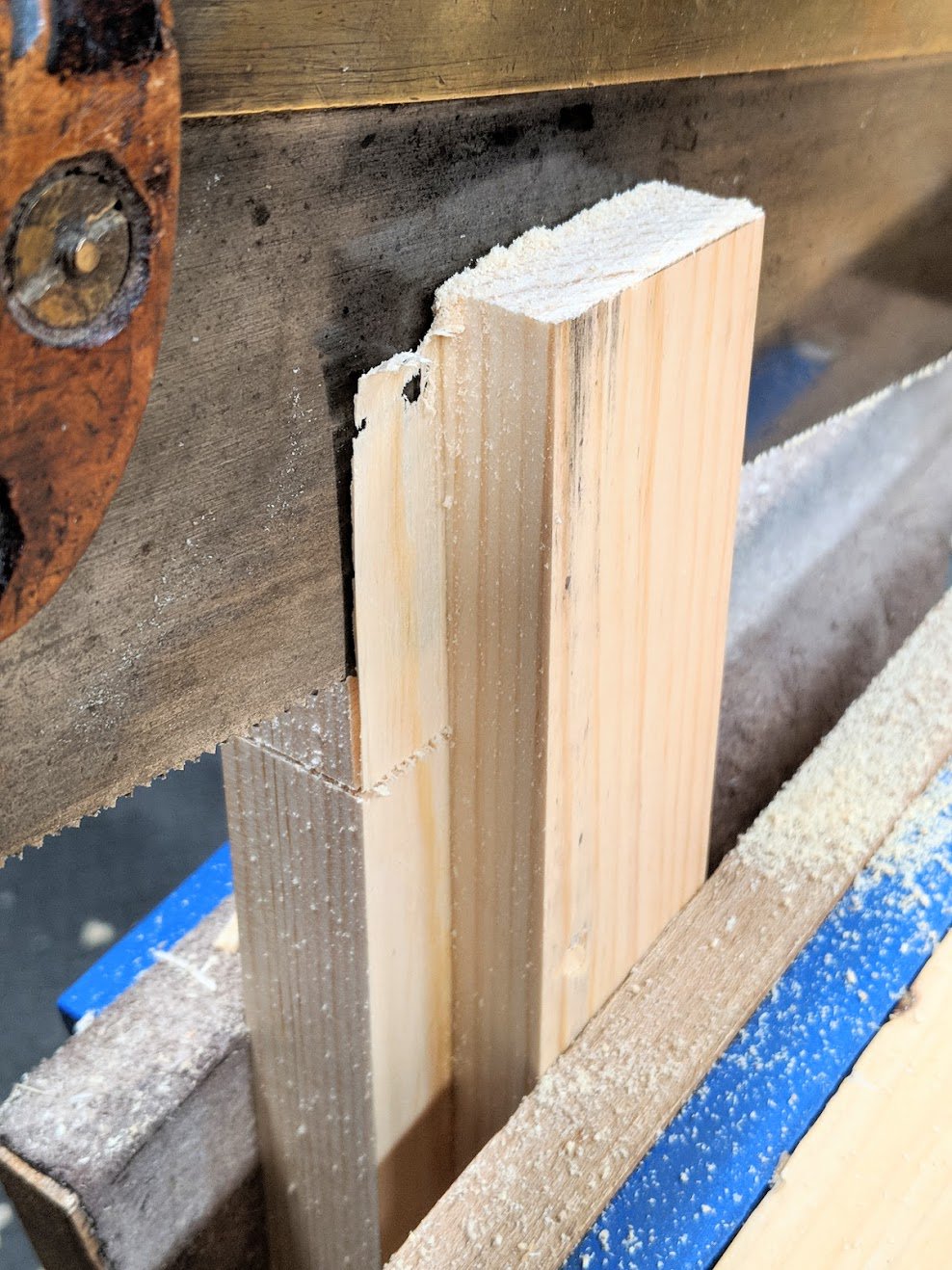 I ripped along the cheek with a tenon saw, following the gauge line.