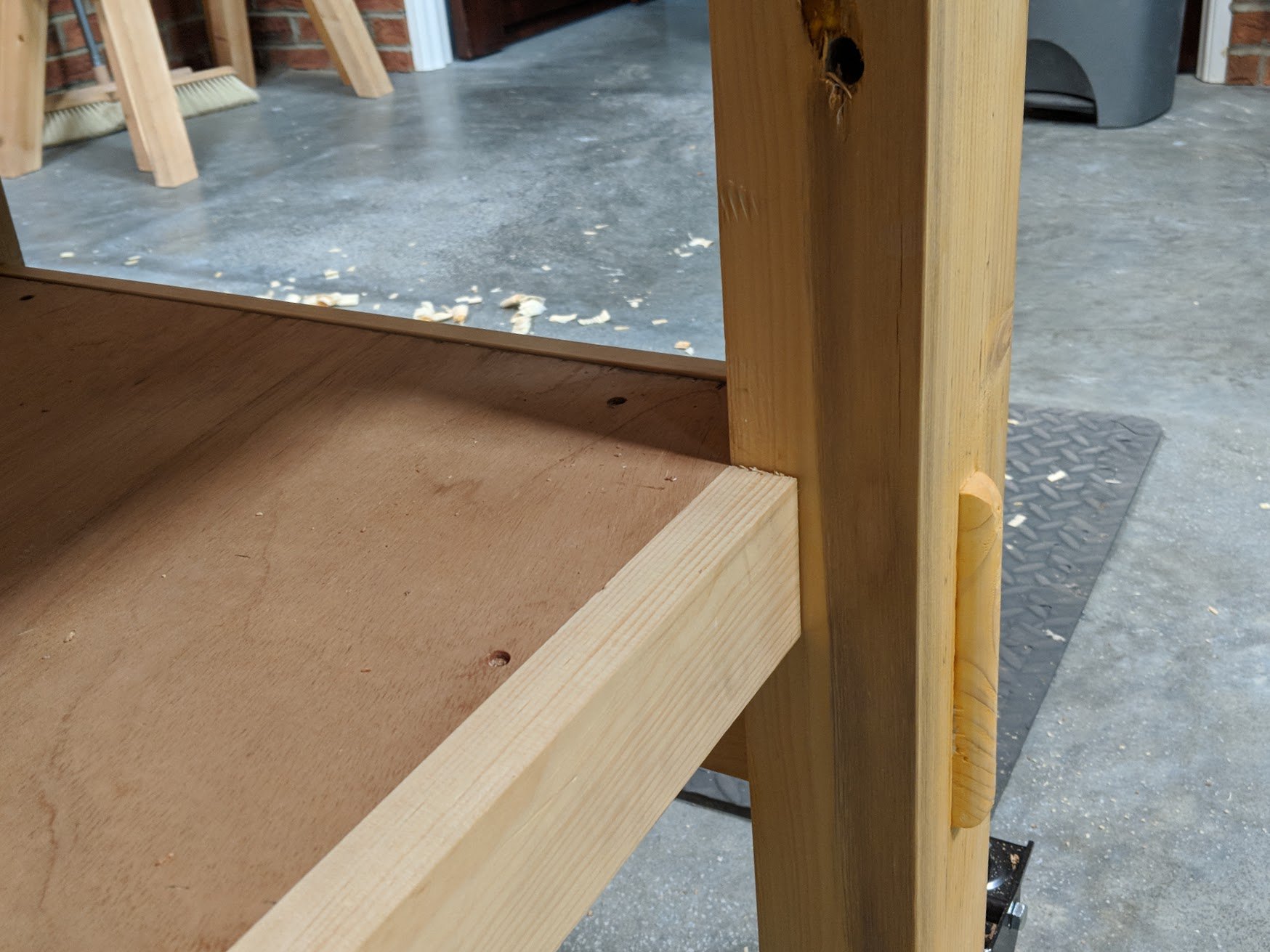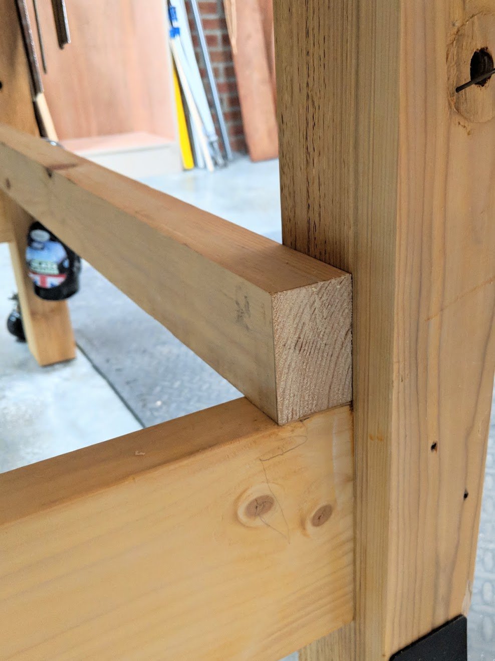 For the edges between the legs along the rails I just used 1/2" by 2" trim pieces nailed in place.