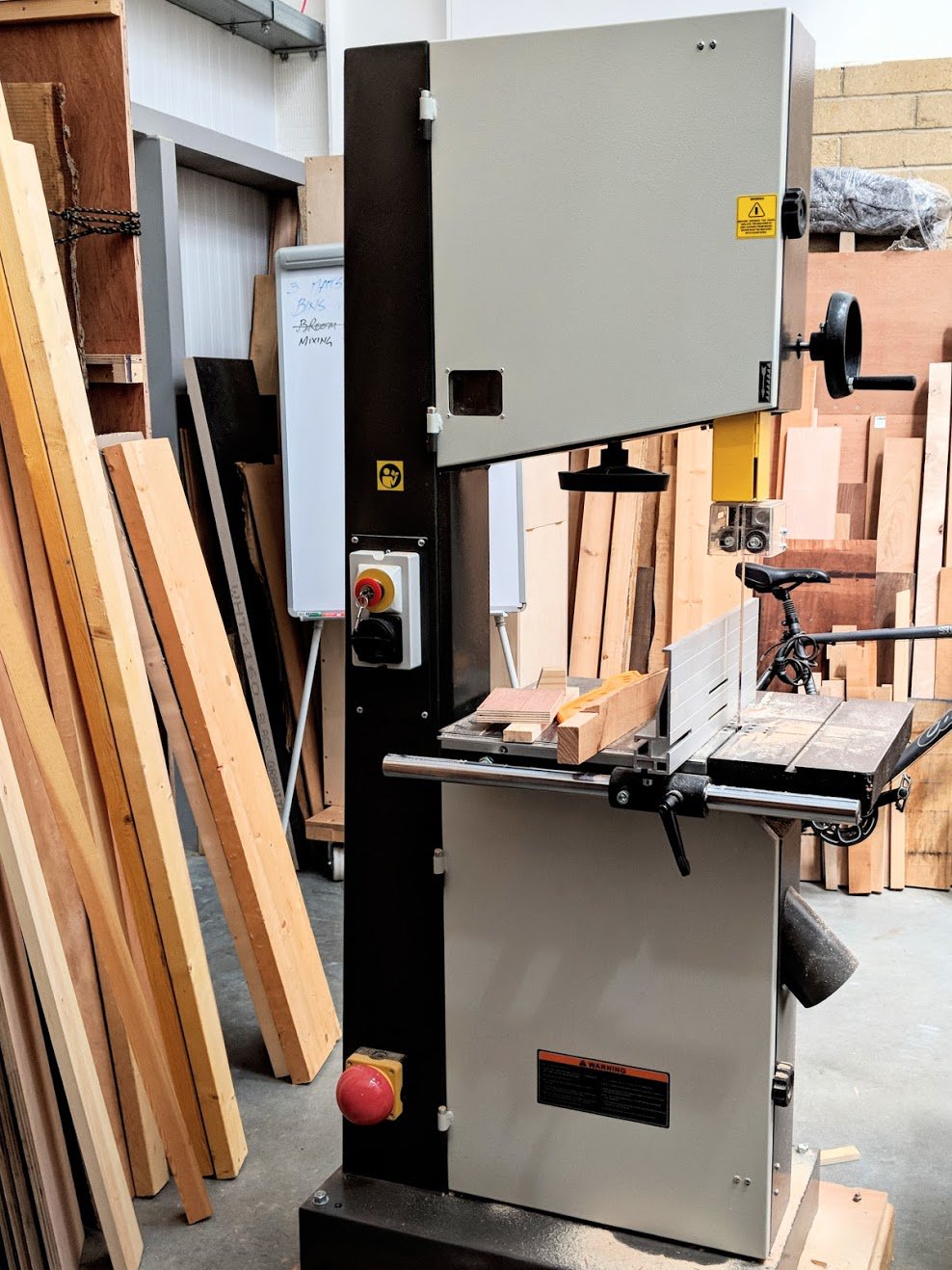 I have three bandsaws including a vintage Startrite 14" which works great but doesn't have all of the more up to date safety features. I am testing out this new 16" one with a variety of different blades, tooth patterns, teeth per inch, blade widths and such. It's also important to to understand the effects different woods play on the bandsaw blades too. I will move one of the 16" into the garage workshop when I feel the time is right and l have my plans for safety in place with my research. Until then it's in the general workshop area where we keep the teaching and apprentice/trainee workbenches.