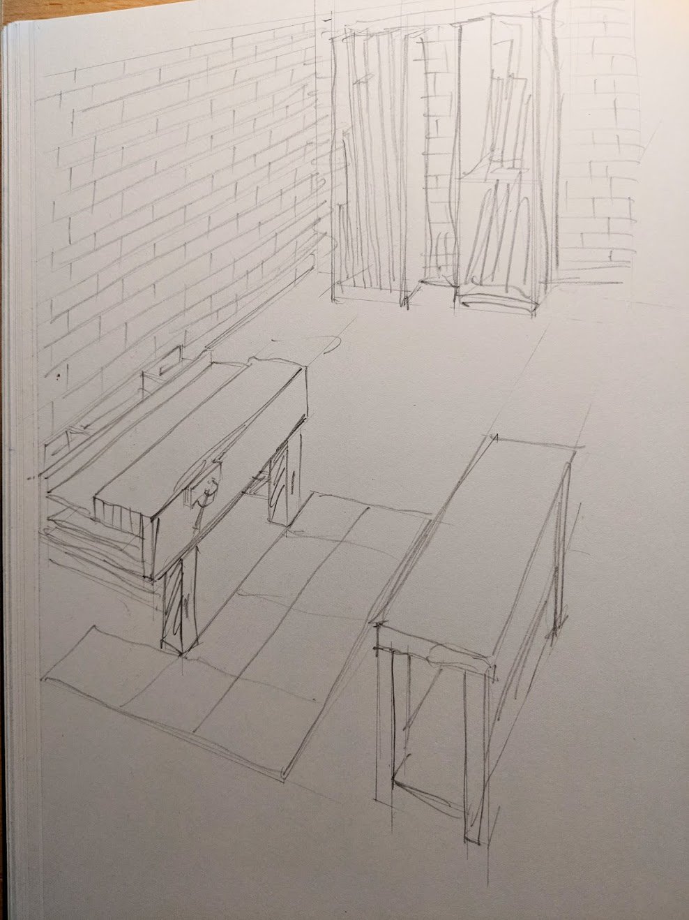 I am happy with my new garage space. Very! Drawings help me to put what I envisage into more concrete realms and they often become the end result. I have had to scale down from what I had because of the garage size but that's OK, it makes my life all the more economical anyway.