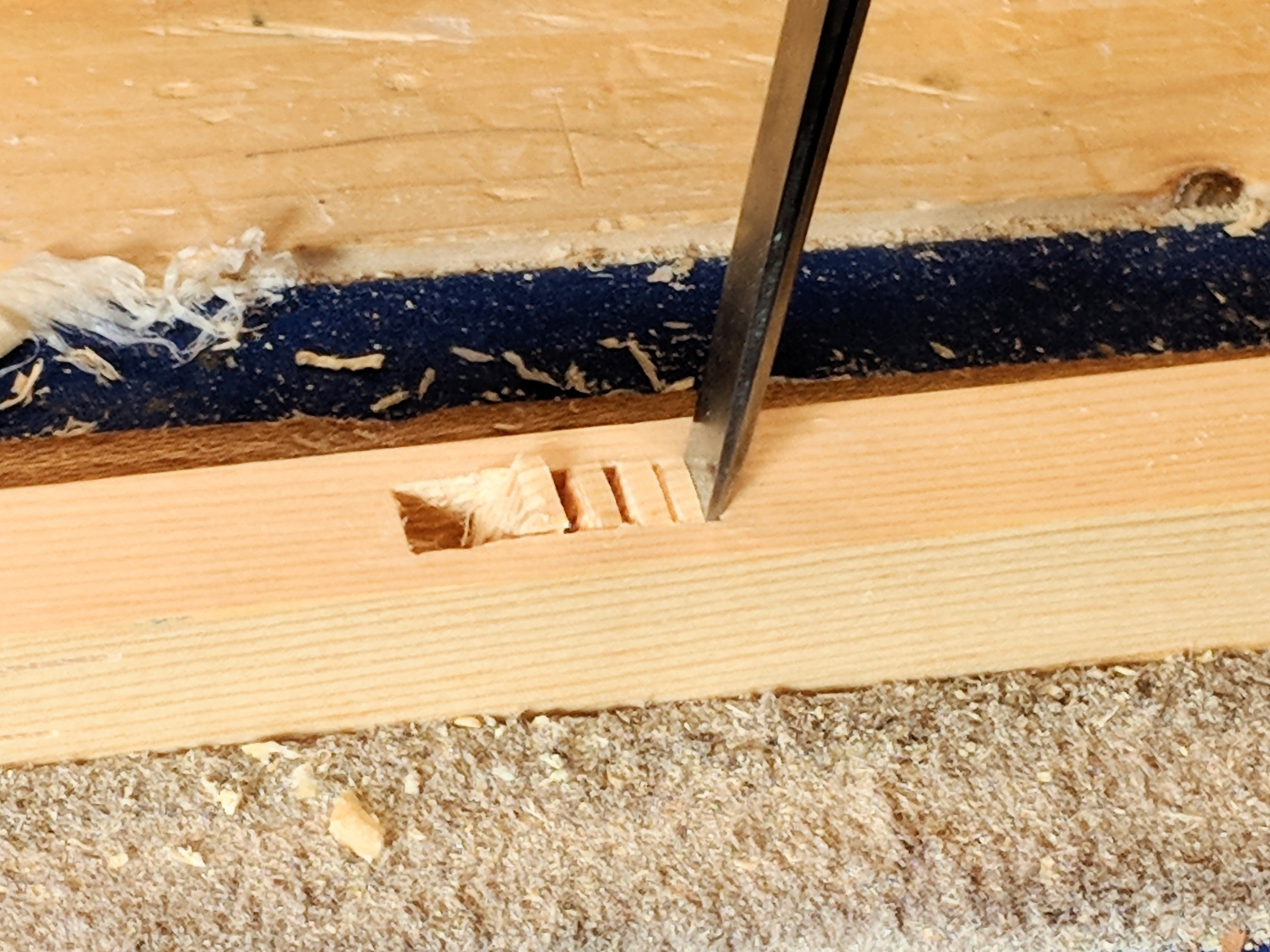 These two lessons seem simple enough. Most of my work is about chopping. Taking small yet precisely sized bites rhythmically, systematically and methodically is always key to good joinery. It's about being sensitive. Sensitivity and accuracy result in carefulness and each of these terms can be used interchangeably. Mostly it is about respect. Getting the job done without these ingredients results in bruising and less production. and more mistakes. I have made many such mistakes as I have grown. Over zealous saw strokes, chisel chopping to hard, Placing tools down too harshly. These all have adverse results in my work and I never feel good at the end of a section of work. I step back, remember Michael, think of George and return to my work. I focus and the results are good.