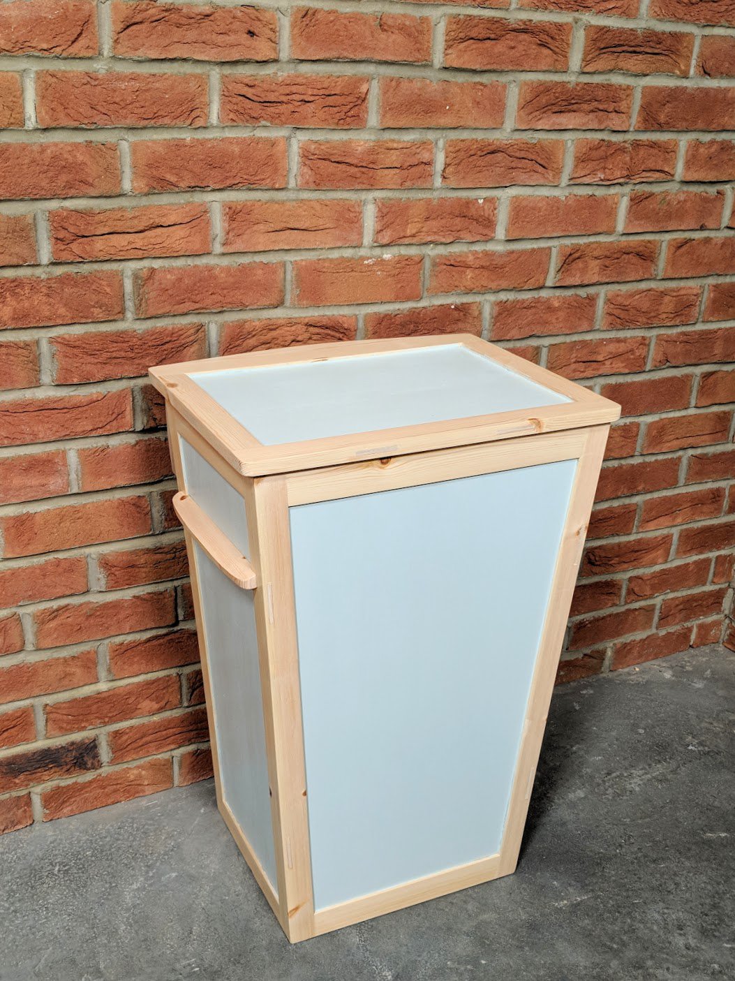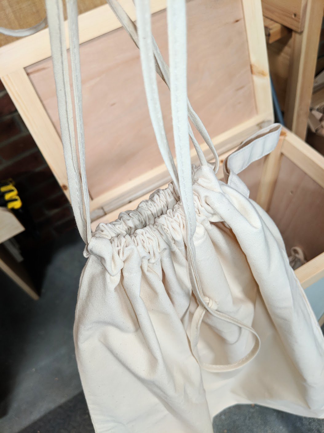 Getting rid of the plastic one was indeed my intention, together with the plastic bin liner I think I was successful. I found a small company called Clever Baggers in Wales (or actually Ellie did for me). Though you can use a plastic bin liner in my bin too, I wanted a cotton one as my shavings and bits of wood and sawdust are not messy. These cost only a little over £3 and by my adding 'eyes' and hooks inside the bin I can follow my conviction to minimise the use of plastic in my life. The shavings go to Izzy's chickens and to start fires in the grate or the compost bin. The Clever Baggers Ltd also went the extra mile and used a double layered brown paper outer for deliver replete with gummed paper tape so all recyclable. I was glad nit to see plastic tape anywhere.