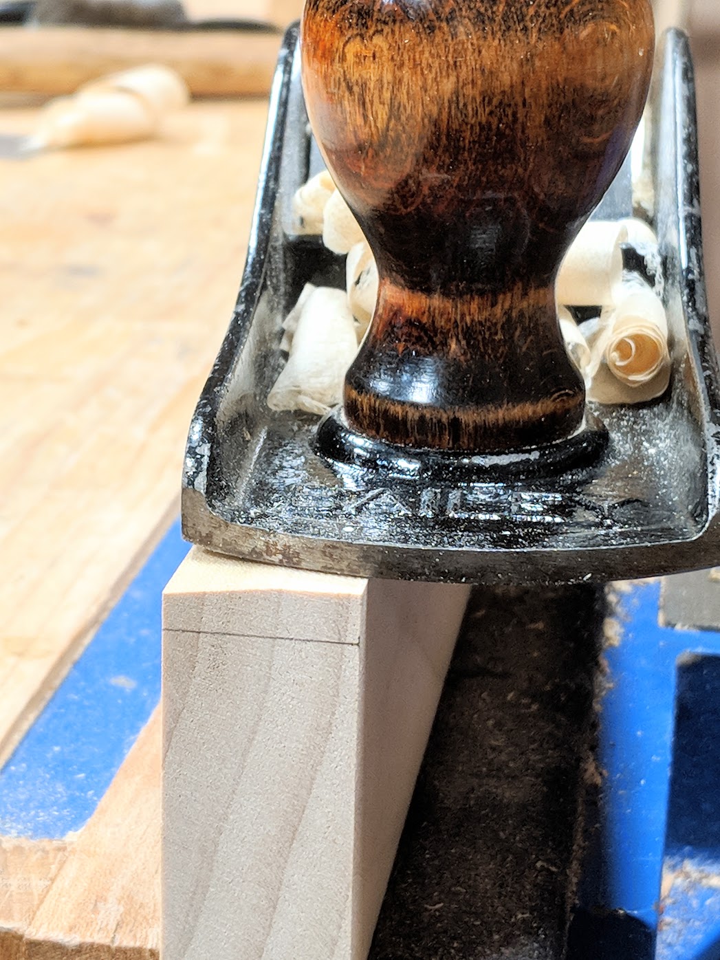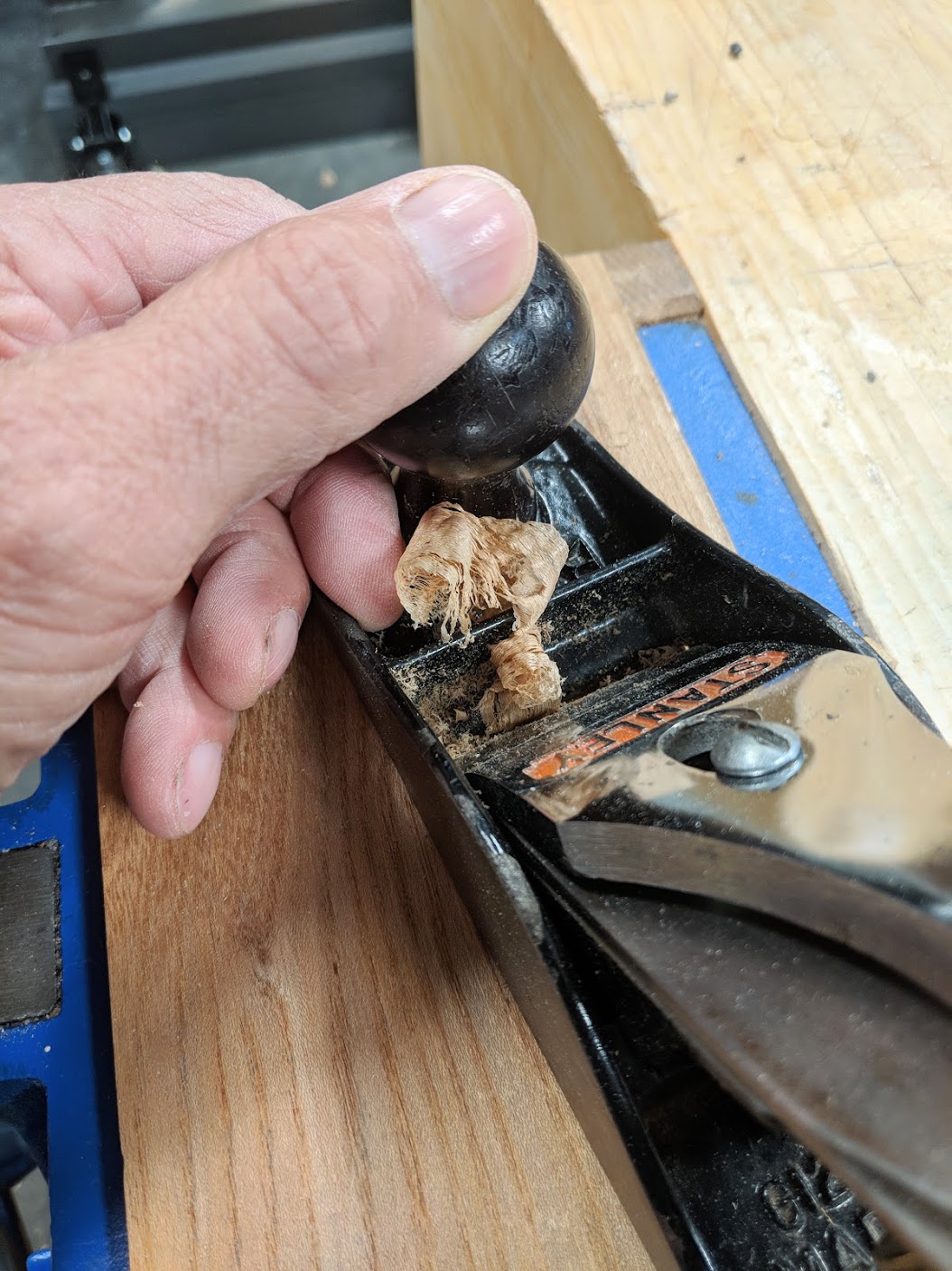I think it's true that when you first start to handle a plane you might feel more a bit like a juggling klutz than someone fully controlled and conversant with its idiosyncrasies to smooth and refine wood with. Jerks, jams, stammers and stutters usually trip up our intent on straightening, smoothing and squaring wood. So many things to think about, to engage with—what pressure where, what tilt, where to transfer from and to with regards to keeping things level. It's more a modern day problem I think, there is no software or computer to correct the errors this thing is capable of developing: no delete button; no way to copy and paste the work of another to replace our own lack. This entry into realness displaces the invasion of the digitised and virtual world where instant results yet inside us have this desire to make wood straight and smooth and square and unmachined. I get it!