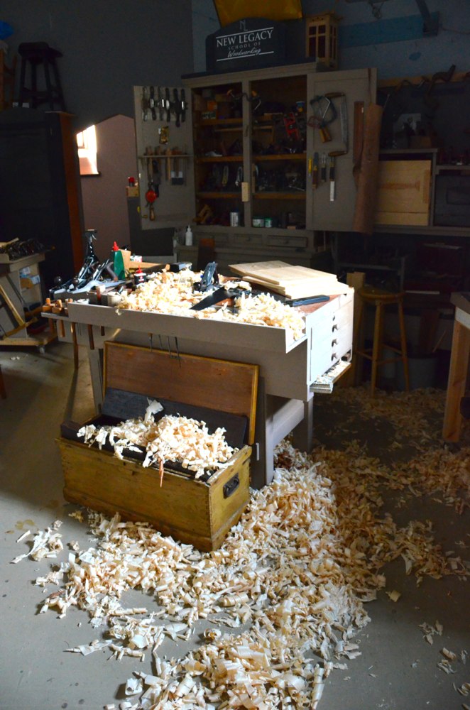 Though I had been sharpening my tools for a year at this point, sharpening another man's plane was a big step and one I did not feel ready for. George's plane was much heavier than mine being a Woden and a #4 1/2. I lifted it gingerly from the well knowing his eyes were on me and following my every move even though he was working on something. I pulled out his oilstone and began abrading the bevel. The stone was hollowed considerably where mine was still fairly flat. Back and forth my hands and arms went. I kept going, feeling for the burr now and then, until I finally had the burr across the entire width. I lifted for the bevelled corners and pulled the cutting edge across the corner of the bench to break the burr. I stropped it on my hand as George had taught me and felt for the edge with my thumb to make sure it was sharp. Reassembling the cutting iron and coupling it with the cap iron I aligned the two together. I wasn't used to the extra width and I felt clumsy. It was made worse by the attention George was showing. As I dropped the assembly into the plane my confidence increased. Cinching down the lever cap, sighting along the sole, tweaking the lever to align the edge with sole I couldn't stop myself from smiling. Now for the big test. George placed the plane on a keruing sill but first he placed the sole of the plane on his oil-in-a-can oiler. Keruing is miserably full of stick sap that sticks the plane to the wood. It's also high in silica which dulls the plane edge in a heartbeat. From then on George regularly told me to "sharpen up." This was the very beginning of trust.