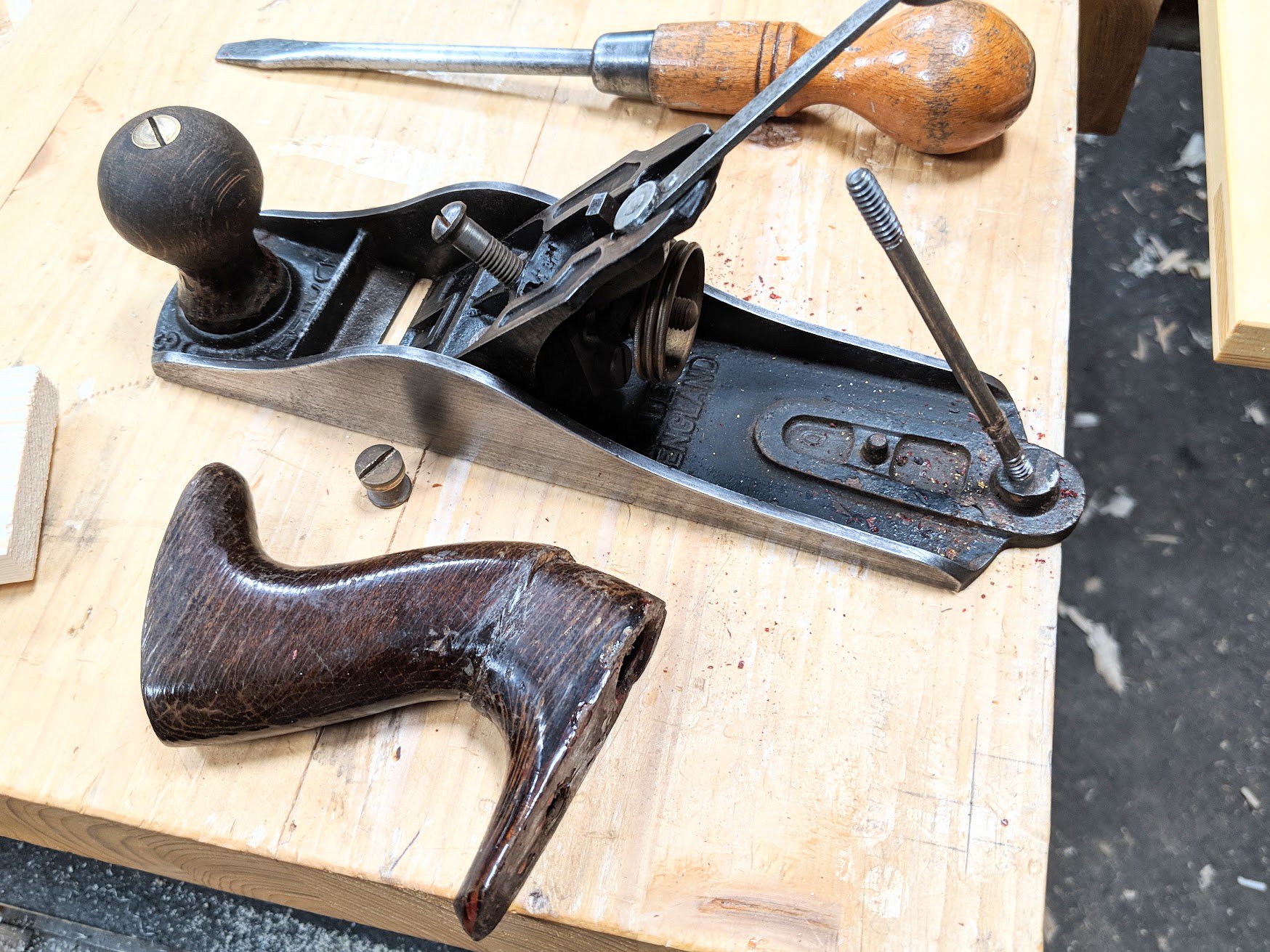 Another plane I bought on eBay is a vintage #3 Stanley with a broken handle. It looks like the handle would just glue fine but I though it was time to make a video in making a replacement handle because they often break or arrive broken. The glued up handle is actually very solid so I left well alone and simply reshaped it for a smaller sized handle. All plane components are in good shape with hardly any wear at all. I love #3s though I didn't need another. This one I bought for just £18.50. Most likely I'll pass it on after it's done.