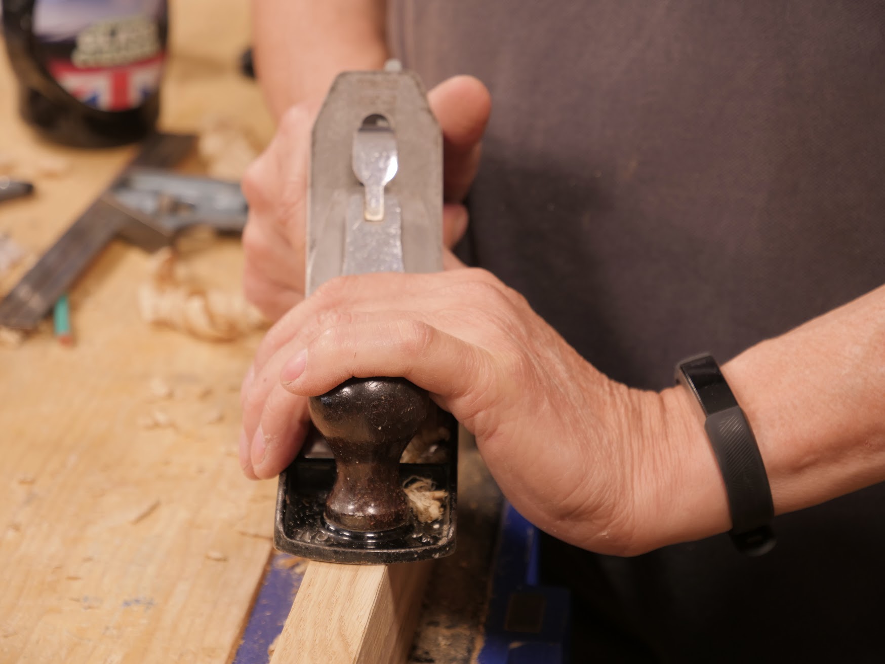 I made a video of the work in hand but here are some of the contortions I went through without my knowing I did such a thing. I replicated them as exactly as I could to help you understand that there is no one hand position fits all wood planing tasks. Here they are: