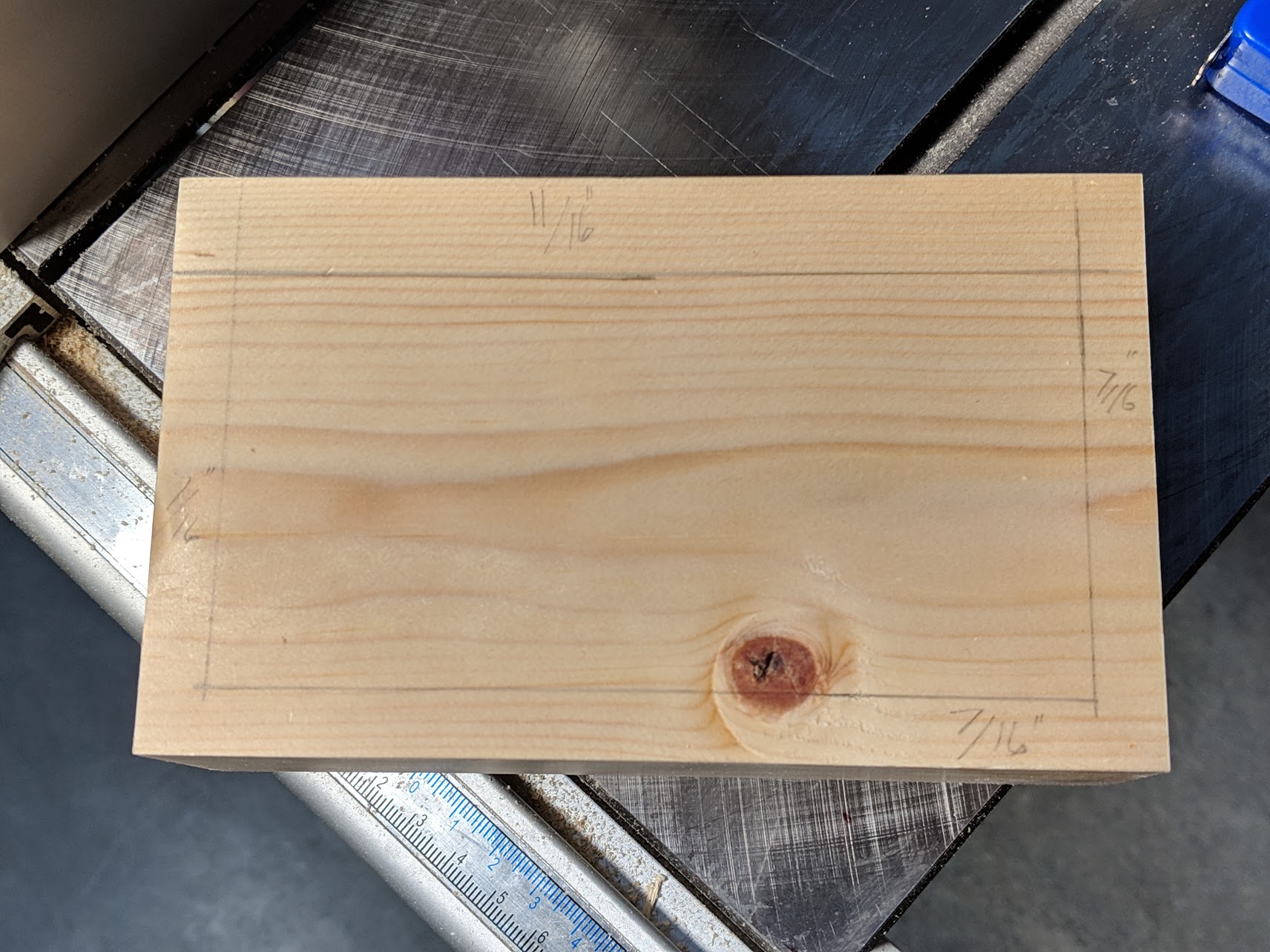Mark a parallel line 7/16" in from each end...