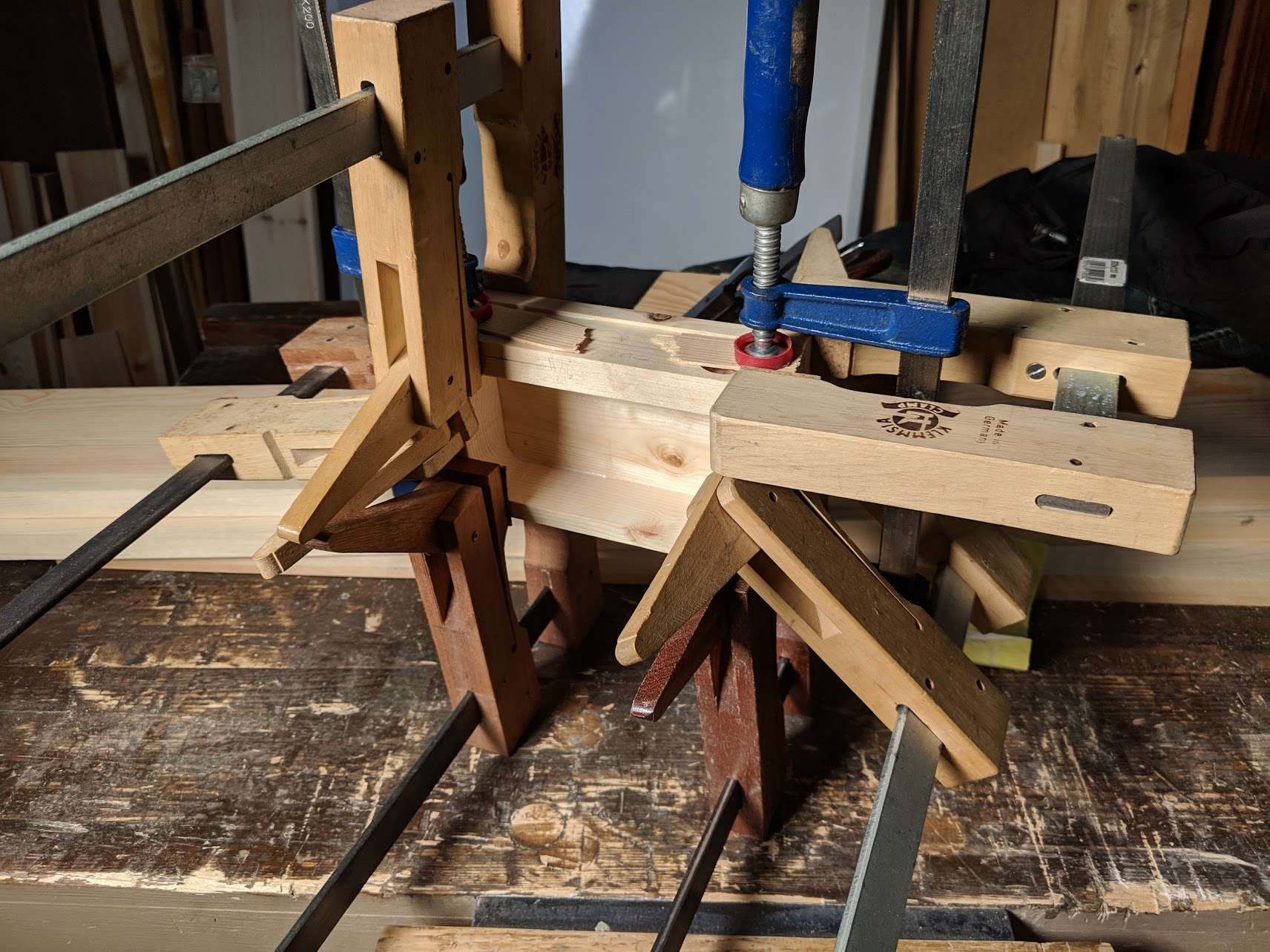 (In one of the above pictures you can see a small step. This step occurs because the saw kerf removes around 1/16" of wood and then a few shavings even more. Once the glue is dry it can be planed flush.)