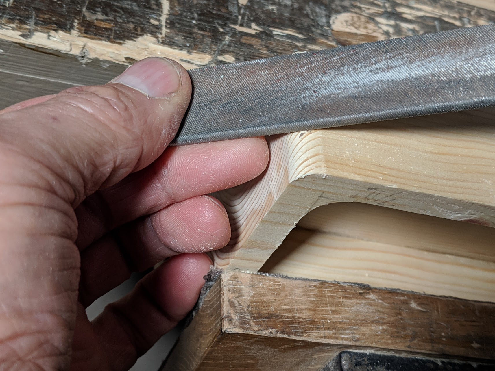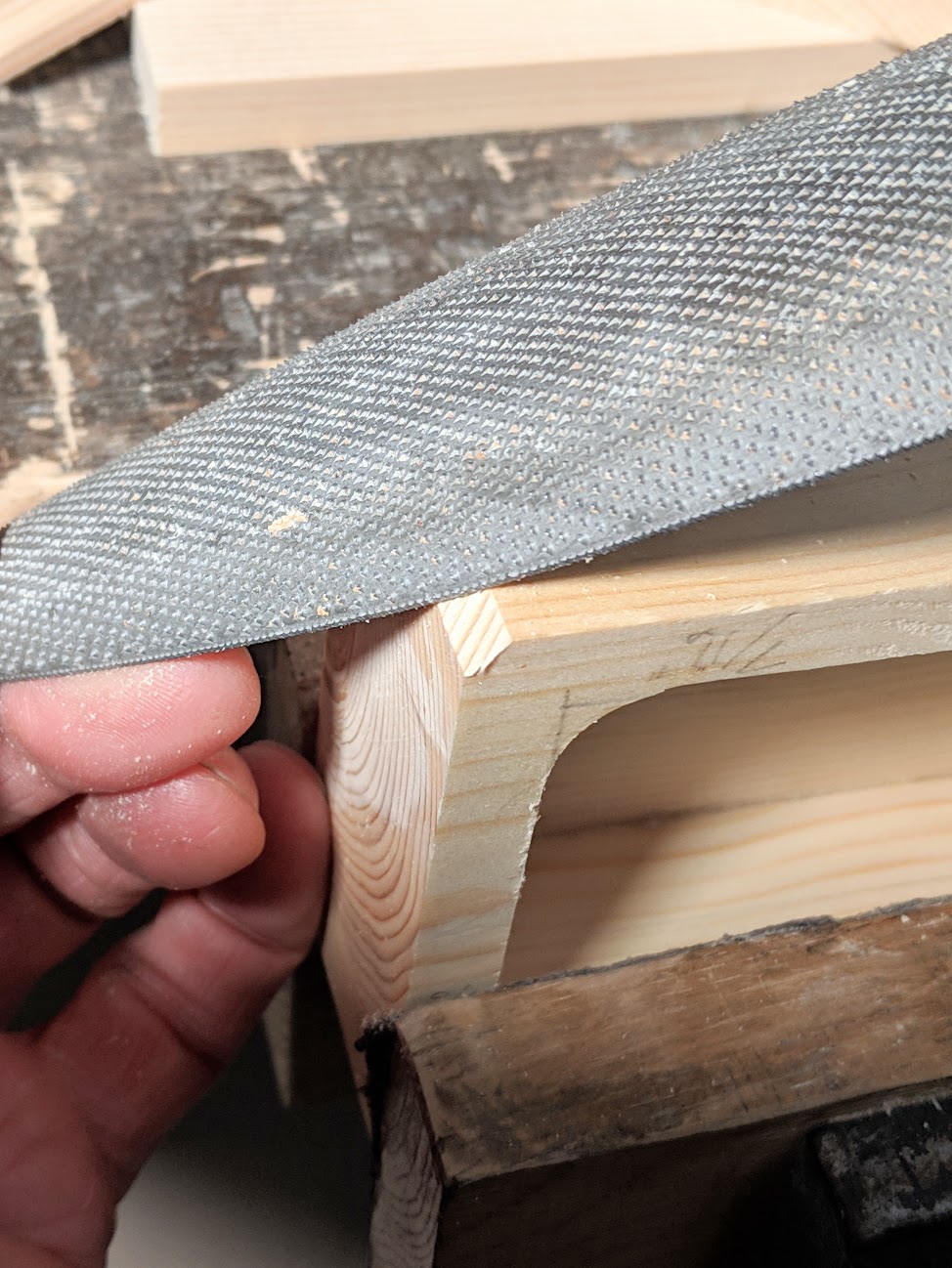 With the 45-degree done, begin rounding with any of the same tools.