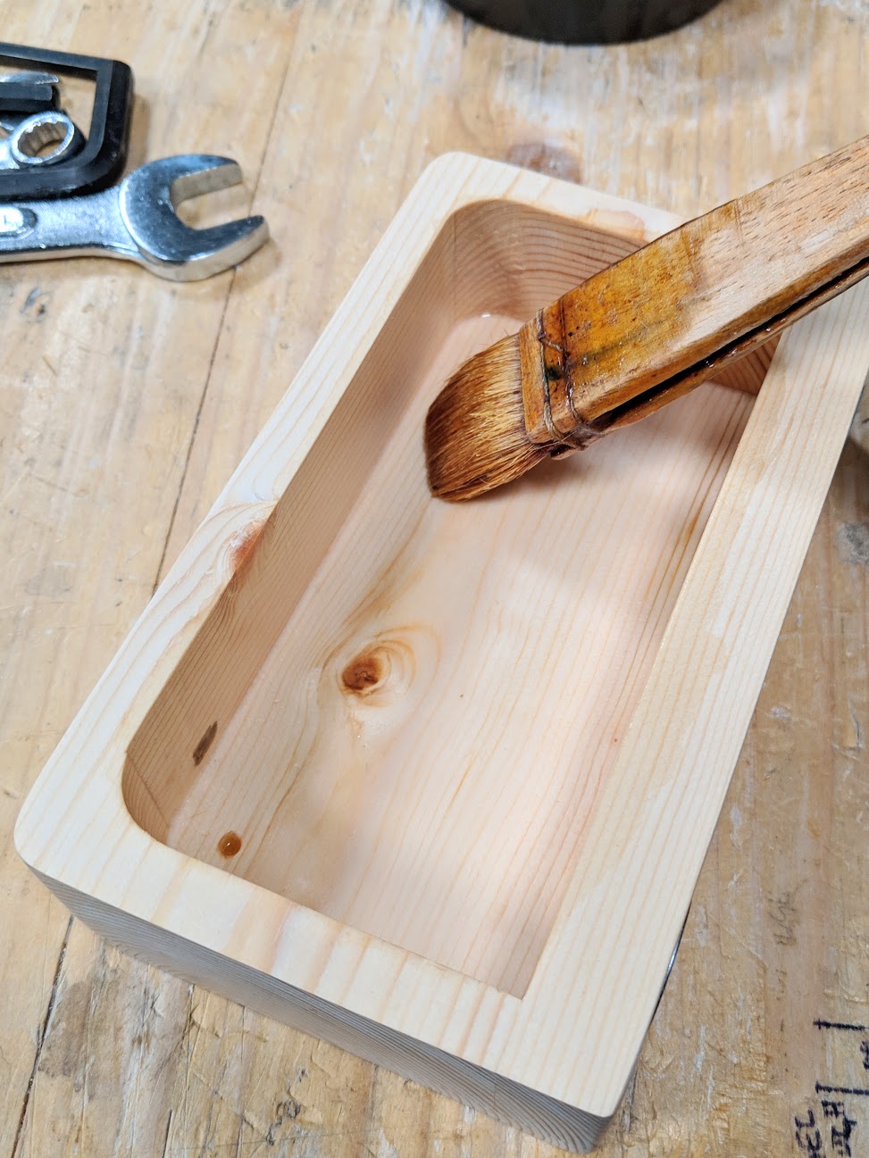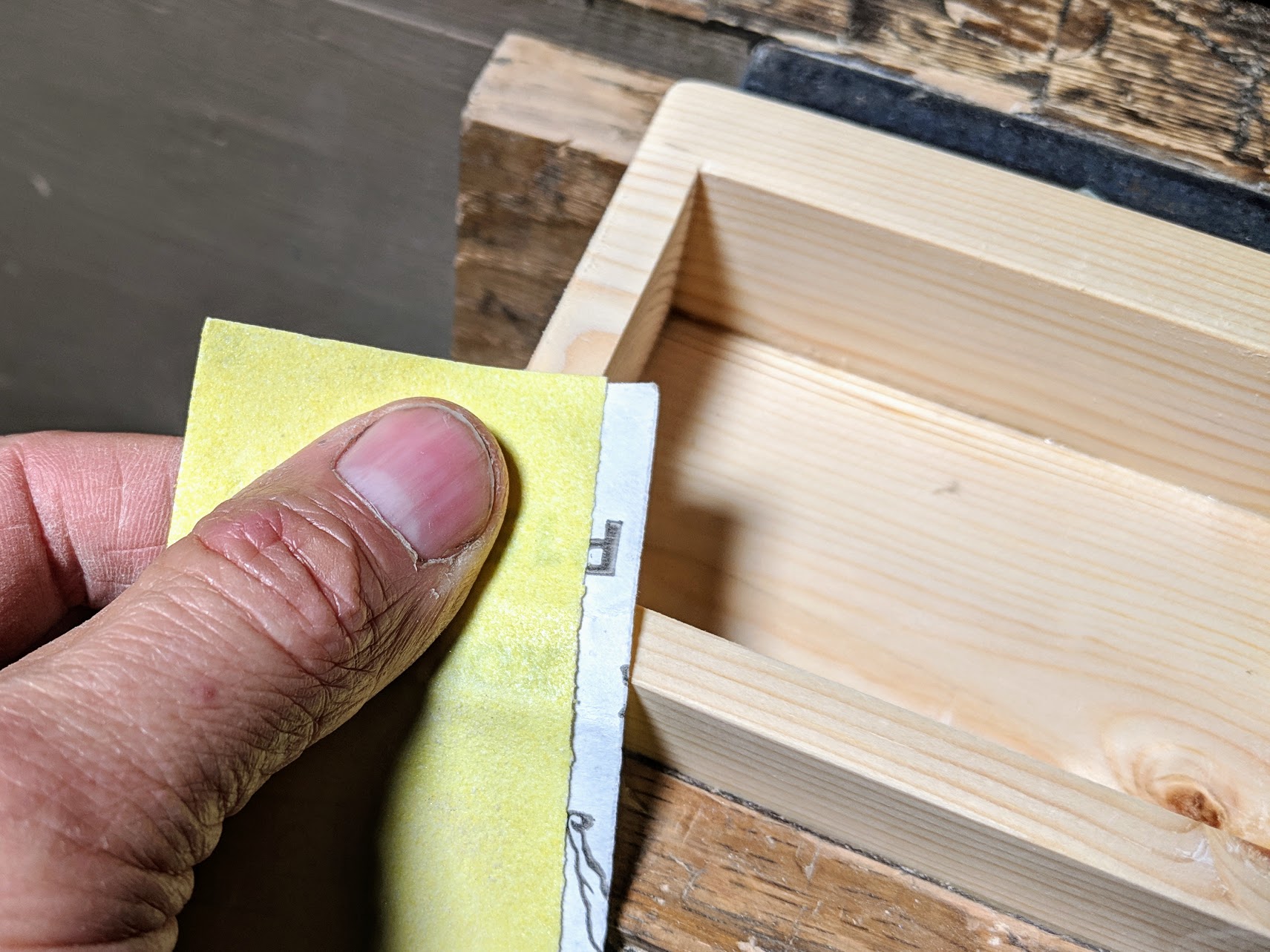 Sand the whole outside of the box tray.