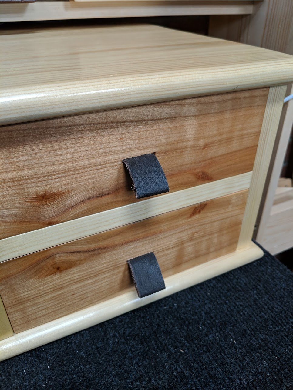 Finishing off making the two-drawer organiser and filming it too made the week special. Filming for me is never without its trials, not the least of which is the interruption my brain goes through after a lifetime of developing as near an uninterrupted flow to my work. I have been used to the momentary disruptions apprenticing brings and so too customers looking for answers. Managing staff and co-workers back then rarely stopped me mid-cut though. With filming that inevitably happens for a range of good reasons not the least of which is me calling a tenon a dovetail or a plane a spokeshave. I either get stopped through my own fault for one reason or another; sometimes I just forget where I am in the scheme of things. Wrong cuts cat lead to difficult or impossible edits and that reflects on the videographers who love a good outcome in their work just as much as I want in my work. Mid-cut interruptions do affect me because we seem to lose that moment important to expressing intent. Some projects take two or three weeks for us to work through and that's before the editing even starts. Having made a prototype prior to that extends the time even though no filming takes place in that sphere of development.