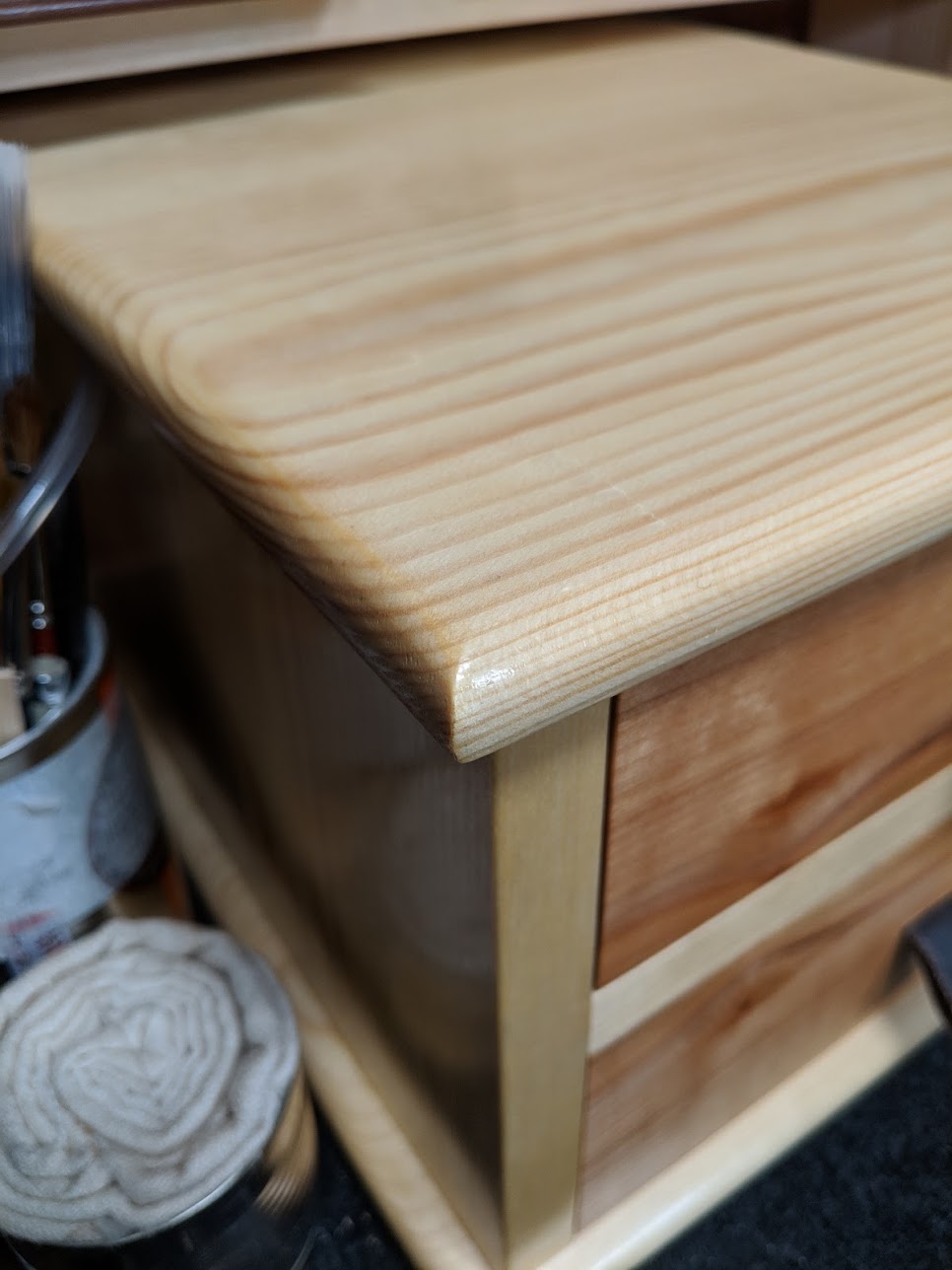 It's a nice project as I think I said already. Compact, tidy, simple and practical. If you are thinking of taking the plunge into drawer making with a cabinet thrown in, the size is just right--not too small and not too large. Where I used hardwood for the drawer fronts you could just continue with pine throughout and it would look just as nice I think. I am also planning on one from hardwood throughout. A more modern take on the theme. I think I'll vlog on that one.