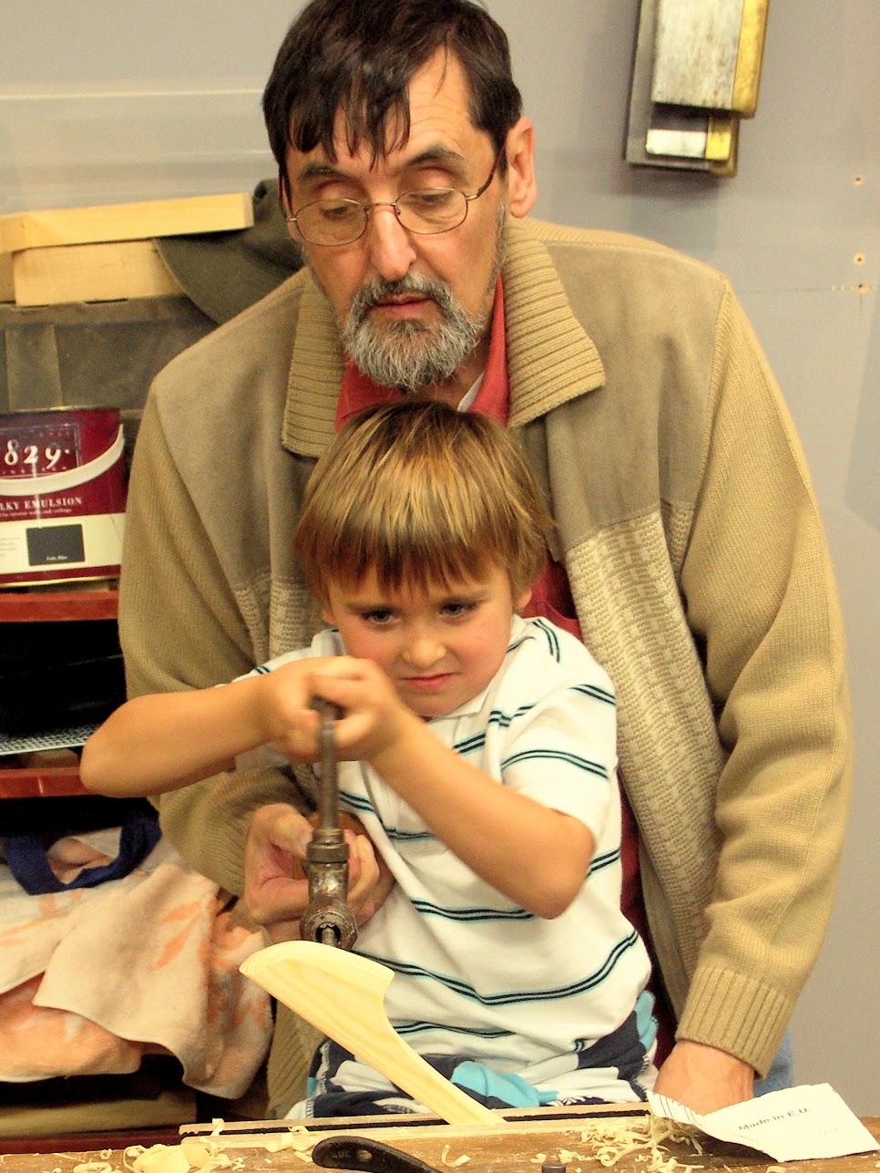 From around three years old my boys were in the woodshop every day with me for while. They indeed cut their teeth on Stanley spokeshaves and sharpened their skills by honing chisels and planes as I watched them. By the time they were all sixteen they were highly competent and the skills they learned are with them for a lifetime. They never question whether tools work or don't and if a tool doesn't exist they make it. They also learned other craft skills but woodworking was obvious because they liked being with me and they liked being in the workshop.