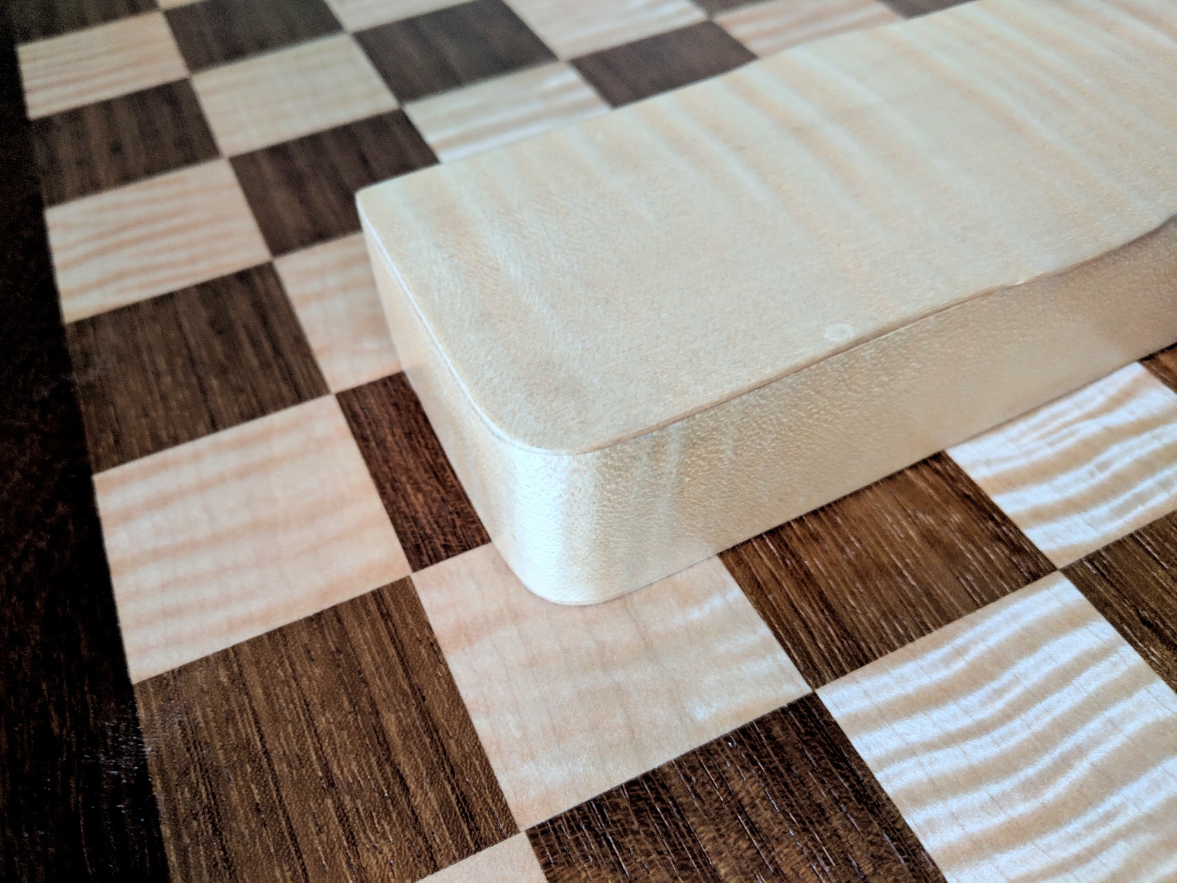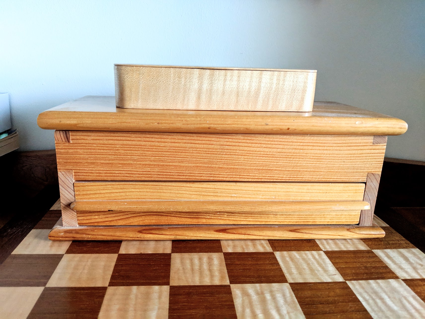 It was then obvious something was out. In reality the difference was not so great because placing them together showed twice the inaccuracy really. it was here that I developed a method I now use all the time for cross referencing my accuracy levels. For the four corners of any box I lay out the dovetails on one piece only. For a two sided box, a drawer, I still layout one set of tails. With the tails laid out and squared across the end I transfer the squared across lines onto a second piece. That done I flip the second piece around and offer it to the first. If the lines align with the second aligning the dovetails are accurate. If they are indeed accurate I flip them end for end and use the lines to mark the third and forth end pieces. This means that I measured the dovetails only once. It is fast and saves much repetitive measuring.