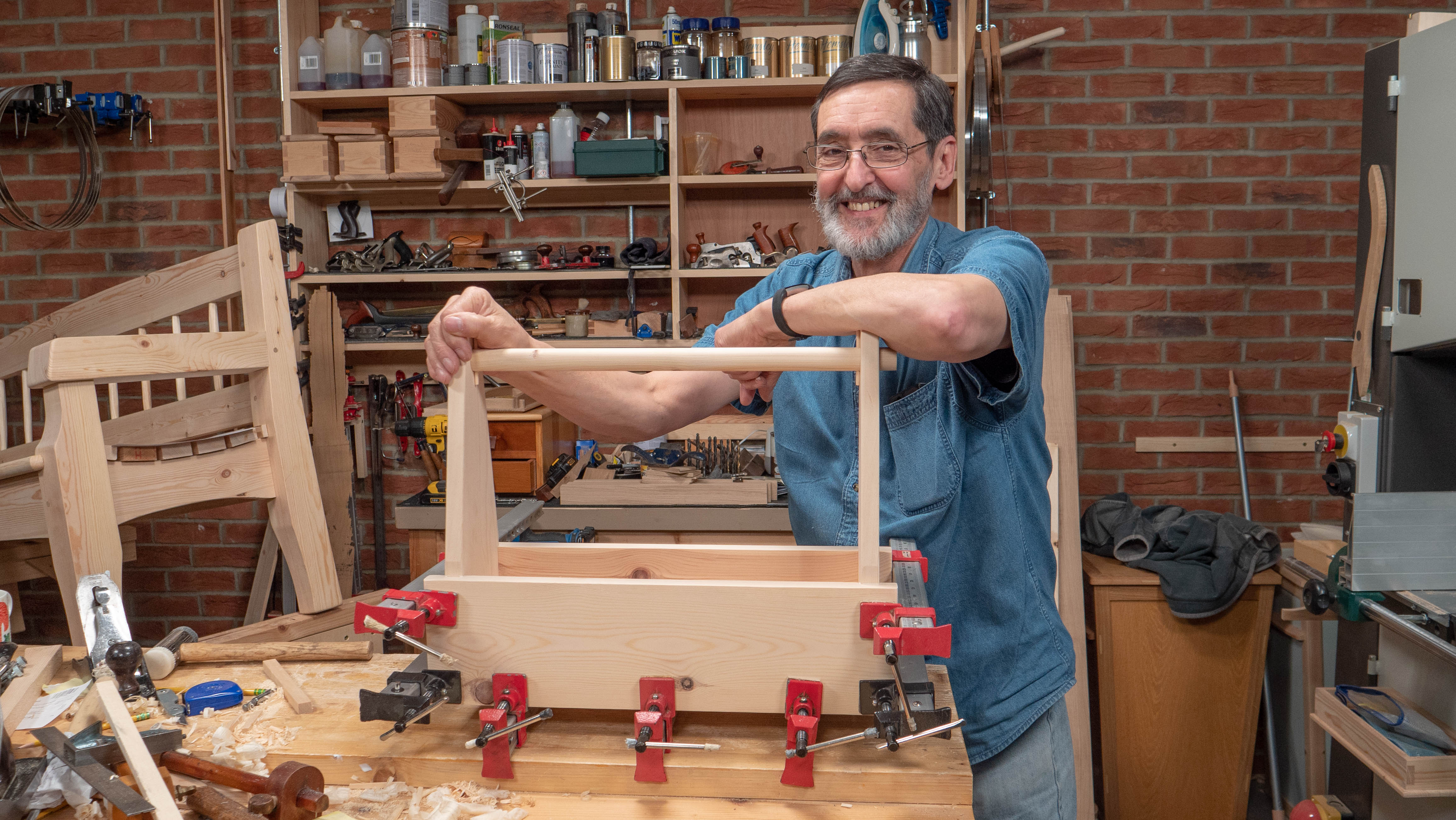 Then in February I made a tool organiser with two drawers. Oh, in January I also built a pine garden bench and then in February I made a few smaller projects for our commonwoodworking.com beginner training program. I also made a second garden bench in oak in February and on into March too. Filming slows me down a bit, well, actually twice as much!