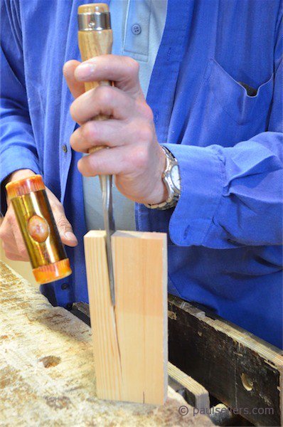 On the one hand I must wrestle the torque of the router and indeed sometimes muscle it ti task, on the other I am completely relaxed in the chopping, paring and finessing. Now that's just me. I should say here that I am probably just as experienced with powered equipment of every kind from massive tenoners down to the ubiquitous router of modern times, so it's not through inexperience that I choose one over the other. Most of my decision making comes from whether I choose protective ways of working wood or the freedom I get from wearing very little. Some have laughed at my head gear when I use the bandsaw. It does look like something out of science fiction, I admit, and I actually do not need it because my extraction leaves nothing to harm me in the atmosphere, but I feel an obligation to my audience. They may not have as good extraction or any at all. Better the precaution.