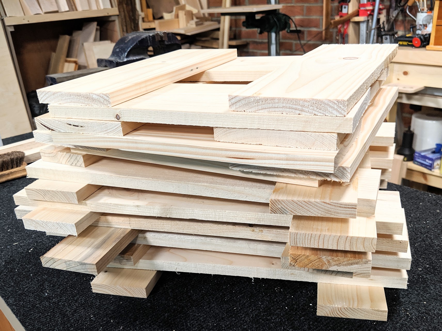 Is pallet wood any good? Of course it is. Or at least it can be. Equally it can be bad too, of course it can, but for anyone who just needs to practice, or needs a low cost alternative to gain experience, pallets can be a good resource. Typically pallets are always softwoods. I have had some premium European redwood pine (nothing to do with American redwood) and soft and knotty spruce that seems always to have the hardest knots in the world every two inches apart. Here is the wood from two small pallets. Surprisingly it is very dry wood. How do I know? I check it by weight.