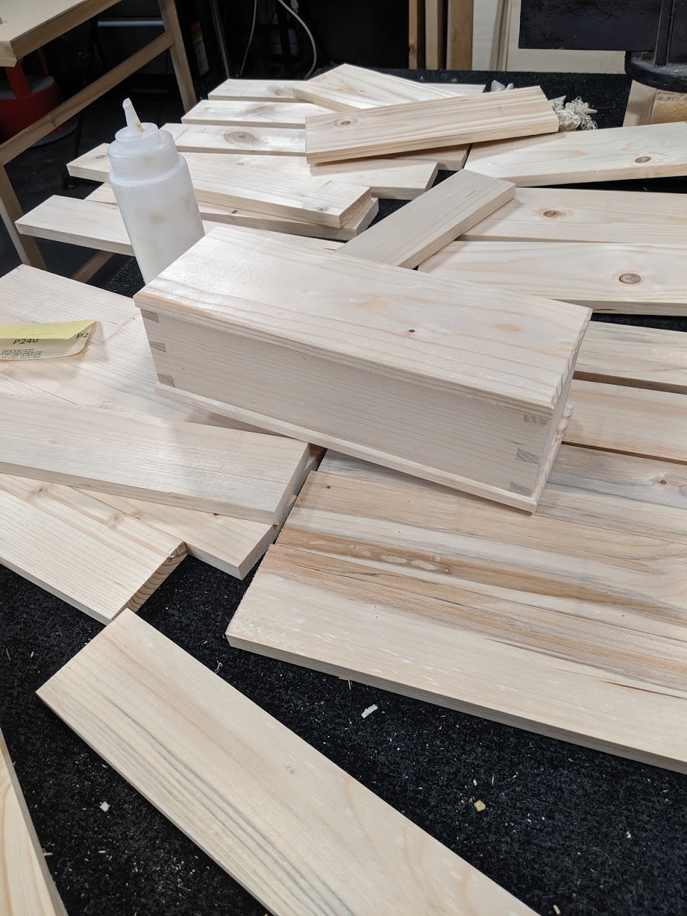 Though this wood type, exploited for shipping and distribution pallets, is a fast-growth material intended for the ugly side of commerce in the mass-industries of the world, it can work quite nicely for low cost boxes. The boxes could never really be described as premium but there are options; they can be left as the one here is in a natural condition or they can be painted, stained, varnished and so on or covered with another material, leather or fabric, even decorative papers and such.